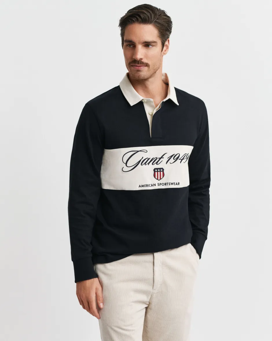 Tämä rugger -mallinen pitkähihainen paita on valmistettu 100 % puuvillasta, tarjoten mukavuutta sekä hengittävyyttä. Paita on moderni tulkinta urheiluperinteestä, ja siinä yhdistyvät klassinen tvillikaulus, napit sekä GANT-logon kirjailu rinnassa.