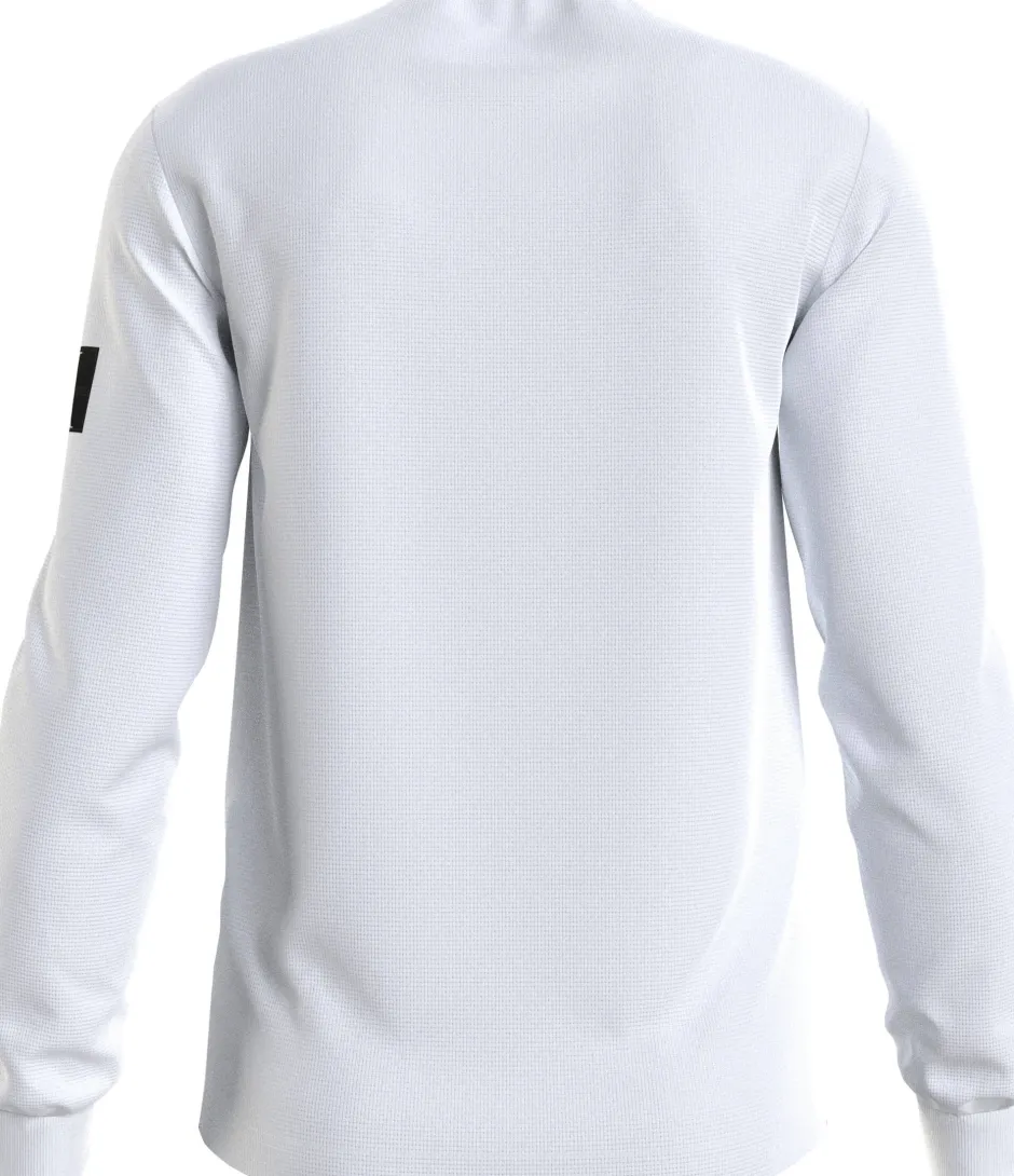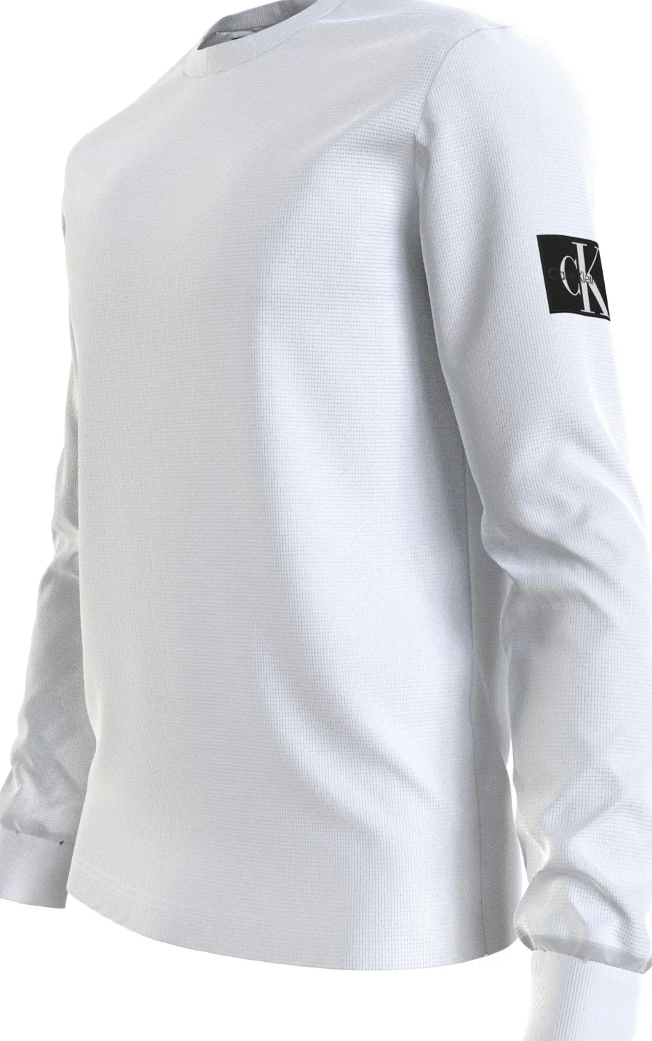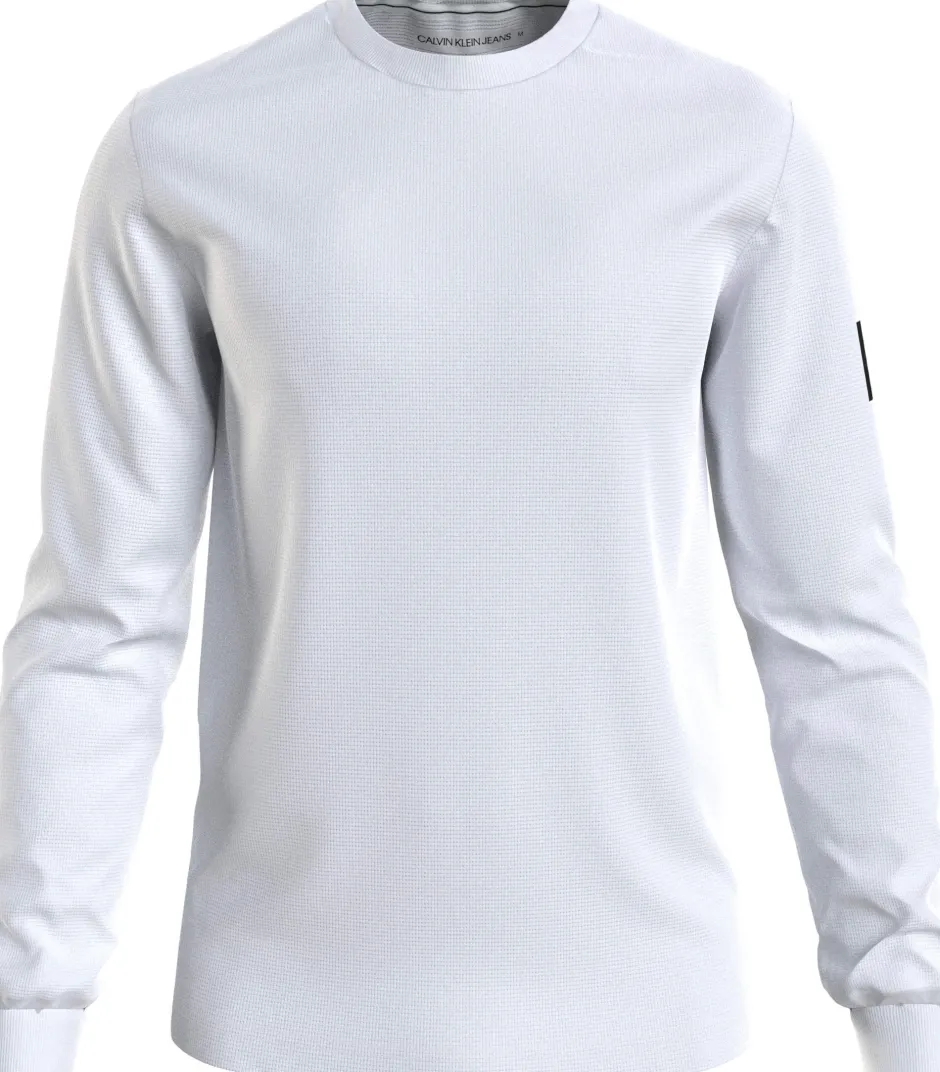 Calvin Klein miesten paita. – Pehmeä kohokuvioitu neule – Slim fit istuvuus – Pyöreä pääntie – Pitkät hihat – Resorineulottu kaulus ja hihansuut – Calvin Kleinin monogrammimerkki hihassa