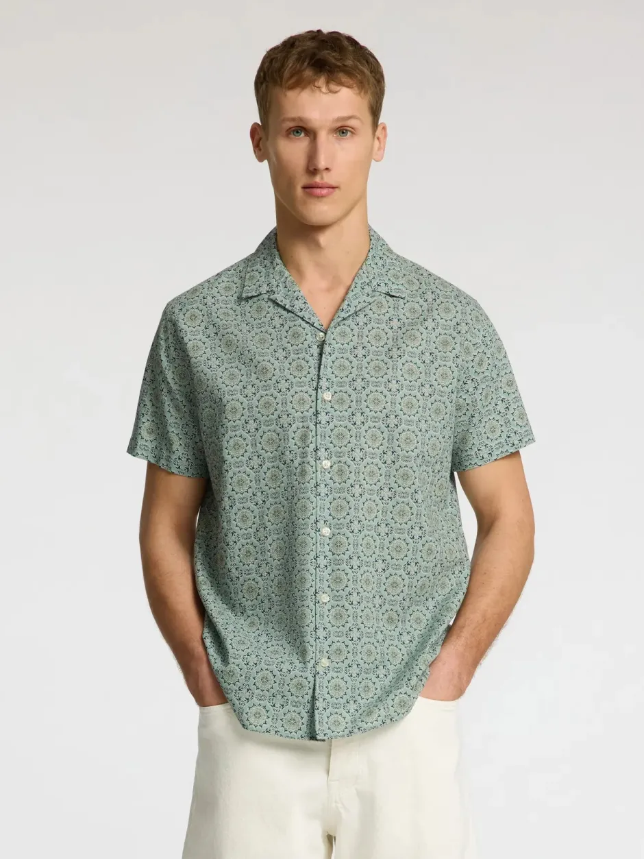 Miesten kauluksellinen paita puuvillan ja pellavan sekoitetta. Normaali istuvuus. .