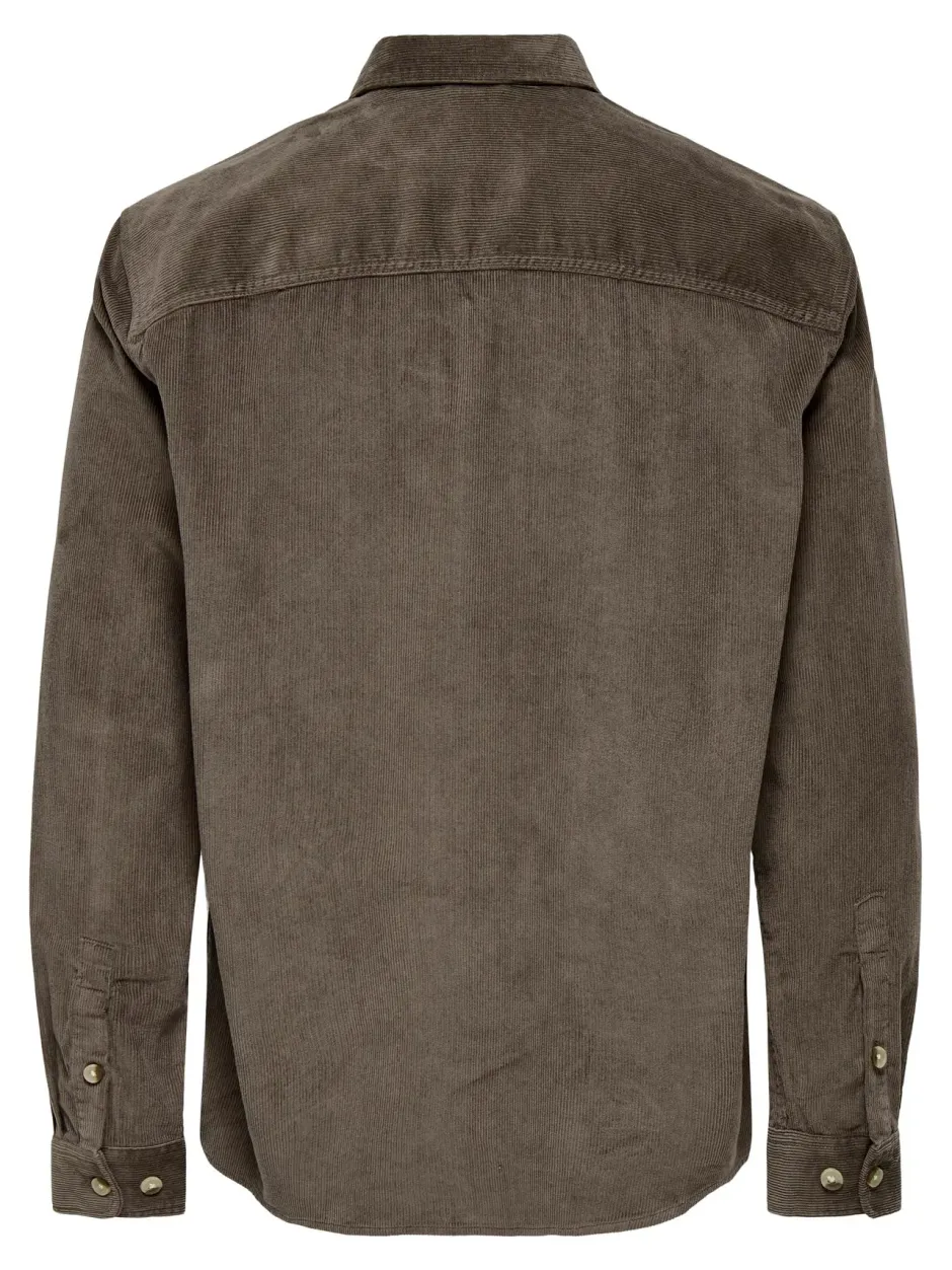 Only and Sons miesten yksivärinen vakosamettinen paita. Rento istuvuus. Kaksi rintataskua. Pitkät napilliset hihat. Kutistuu enintään 5%.
