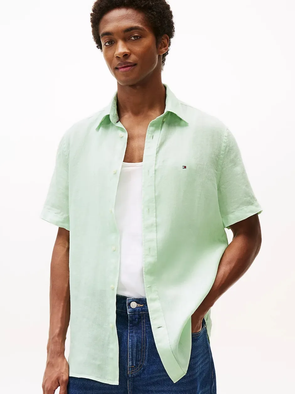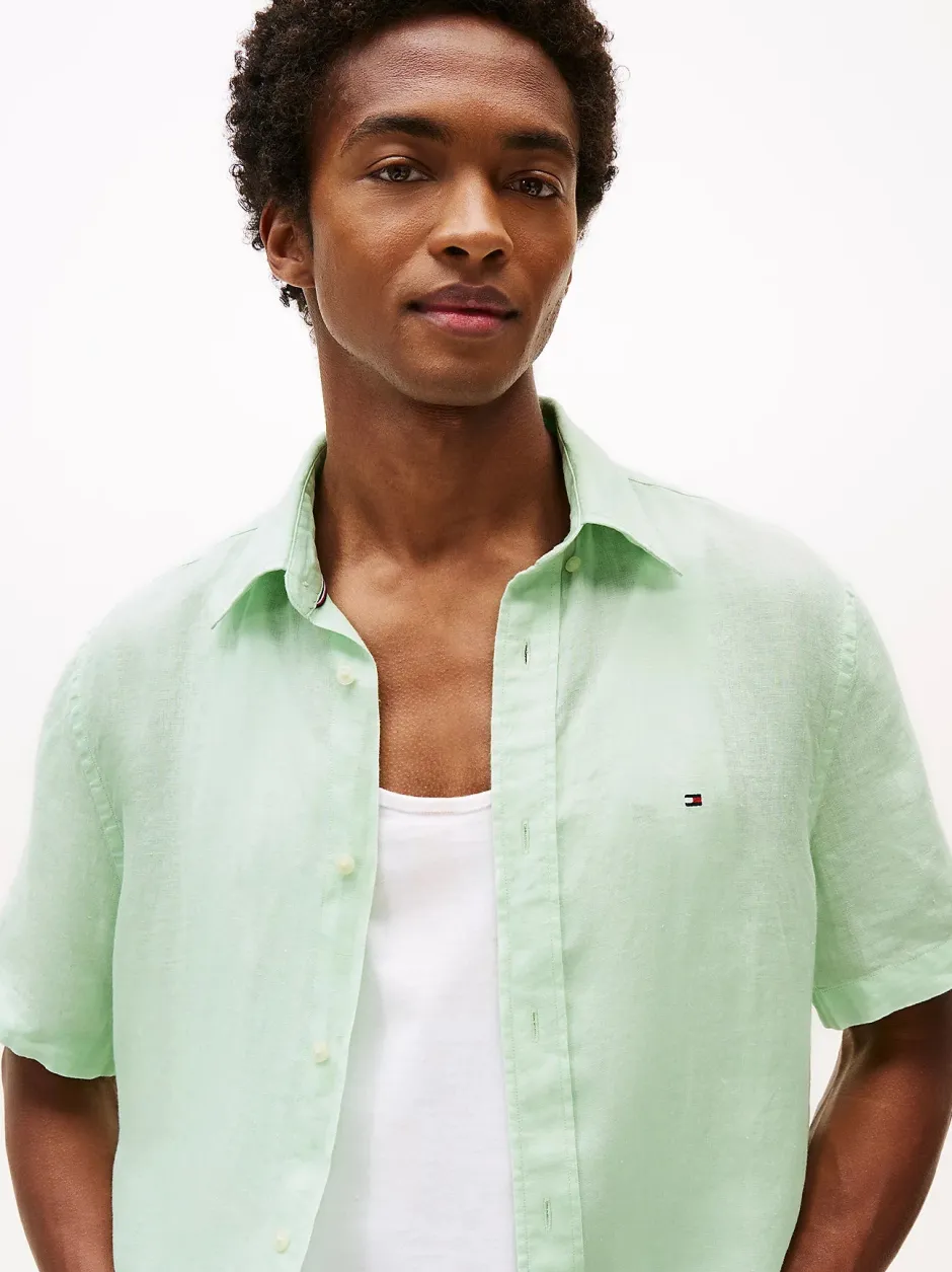 Tämä täyspellava paita on pigmenttivärjätty tuomaan elävän ilmeen, ja siinä on lyhyet hihat, jotka luovat kesäisen tunnelman.