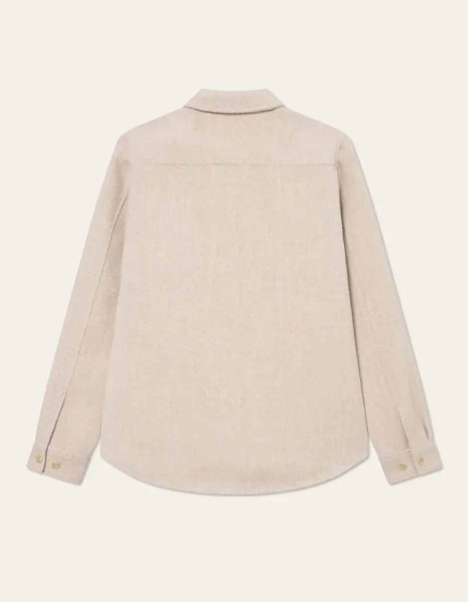 Paluu suosikki raskaasta bouclé-kankaasta. Paitatakki on helppo kerrospukeutumisvaate, jossa on teksturoitu pinta ja hieman laatikkomainen muoto.
