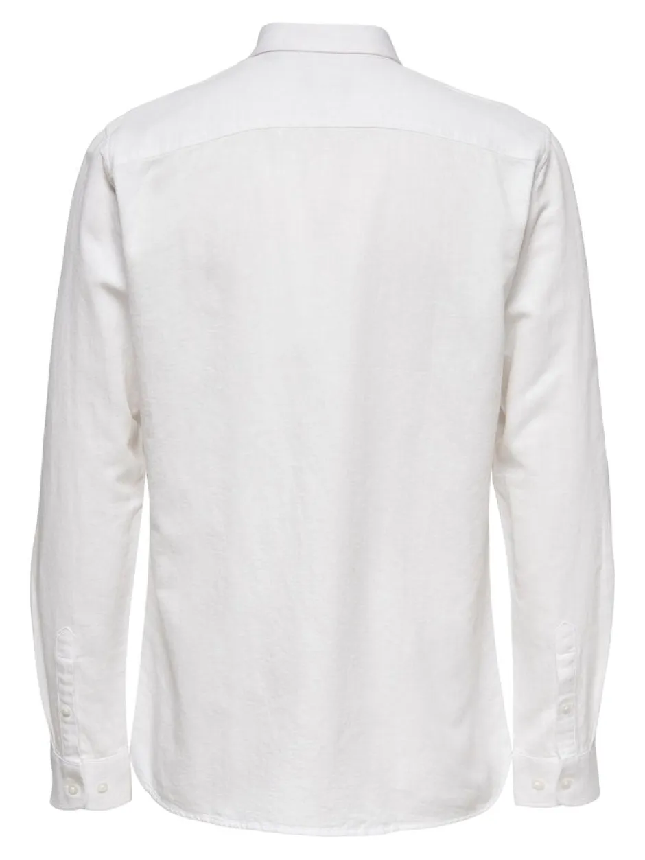 Only&Sons viileä ja kevyt pellavasekoitepaita. Paidassa on nappikiinnitys. Kauluksessa kulmanapit. Kaarrettu helma.
