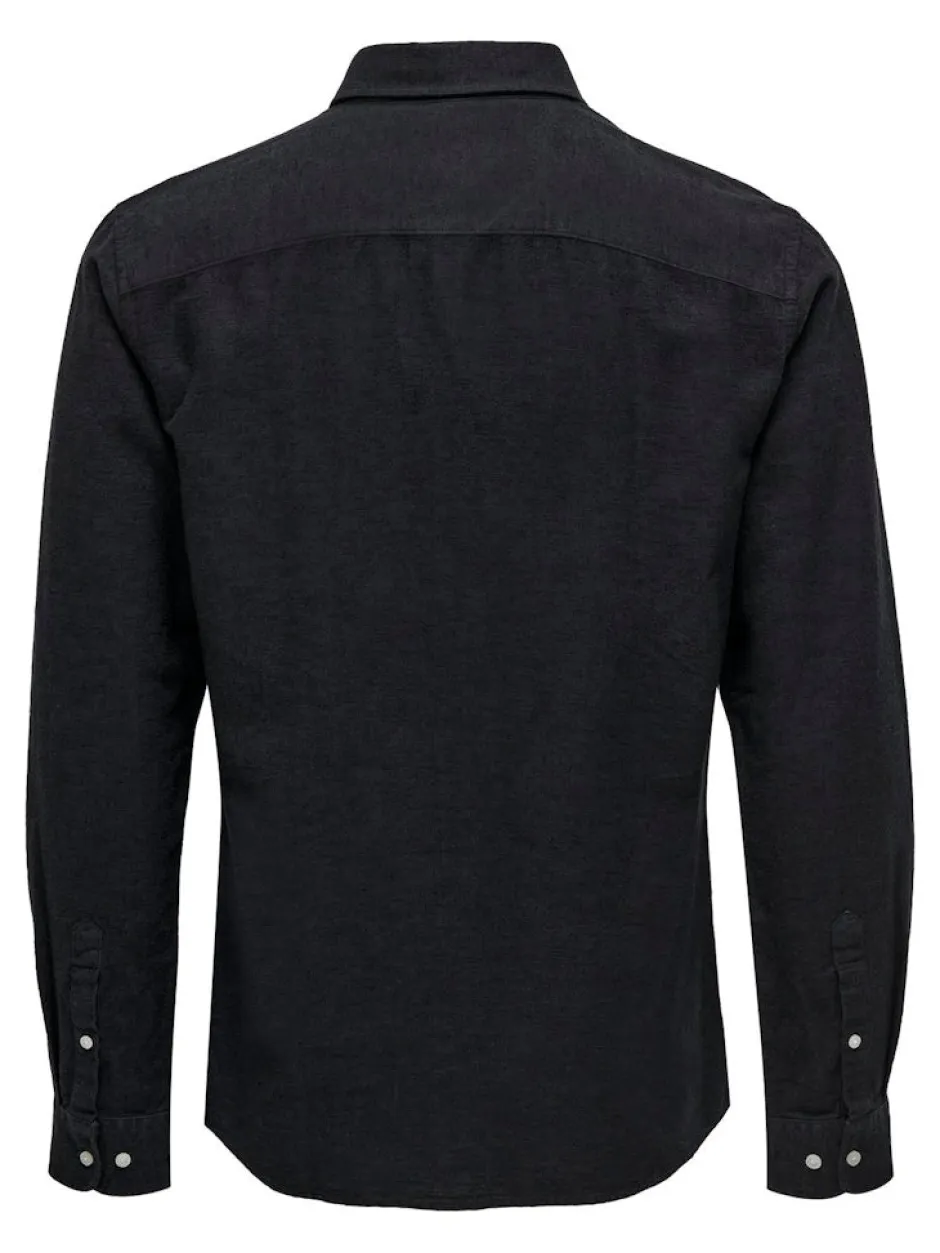 Only&Sons viileä ja kevyt pellavasekoitepaita. Paidassa on nappikiinnitys. Kauluksessa kulmanapit. Kaarrettu helma.