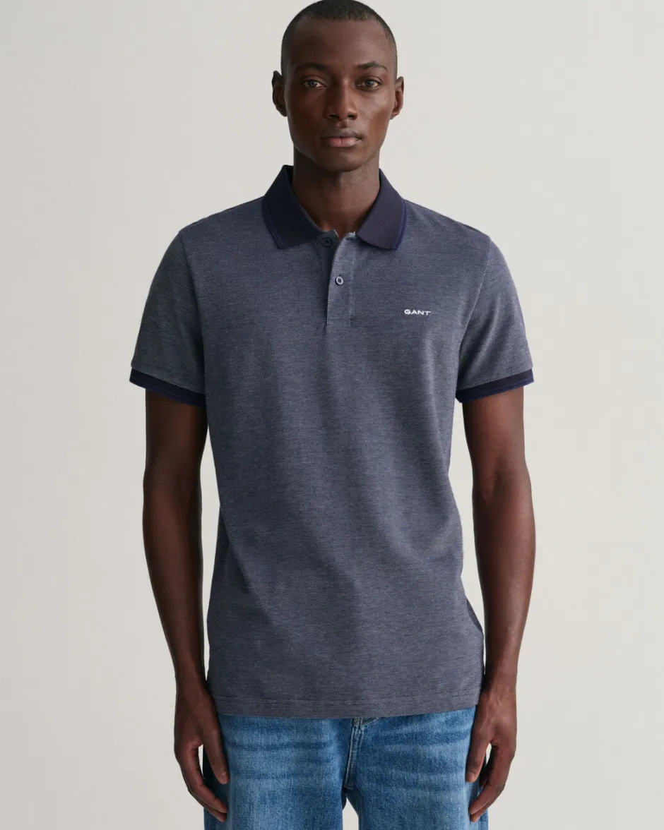 Gantin meleerattu pikeepaita on varma valinta! Kauluksessa ja hihansuissa väritys. Rinnassa Gantin logo. Napit kauluksessa.