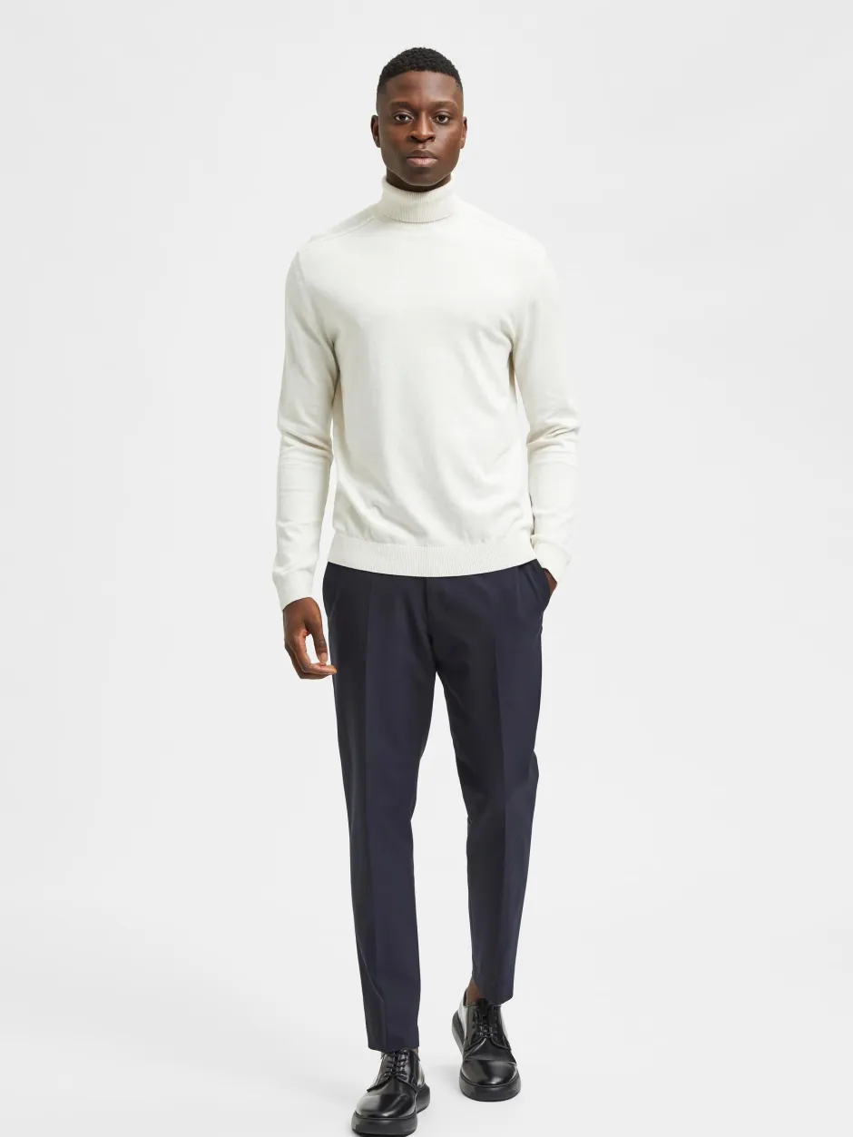 Selectedin yksivärinen, pehmeä ja tyylikäs poolokauluksinen neule. Poolokaulus, hahansuut, sekä helma ryhdiskästä ribbineulosta. Poolokauluksinen neule sopii erinomaisesti bleiserin ja chinojen kanssa. Klassikkopaita jokaisen miehen vaatekaappiin!