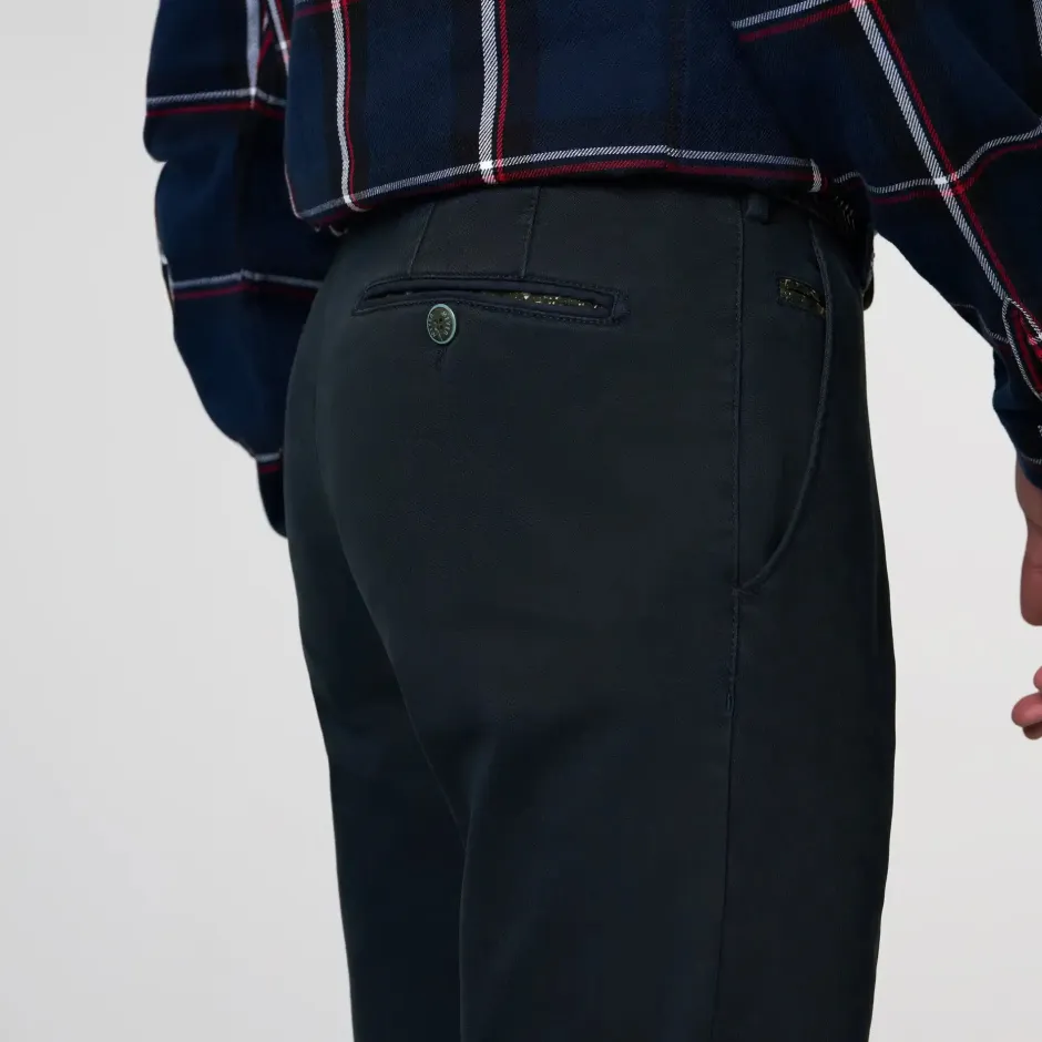 Pyöristetyt ranskalaiset sivutaskut ja lisäkolikkotasku oikeassa taskussa
