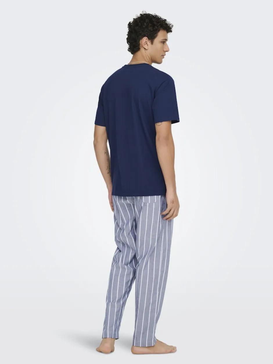 Lisää arkeesi ripaus mukavuutta tällä pehmeällä ja rennolla pyjamasetillä. Setti on valmistettu luonnonkuituisesta puuvillasta, joka tekee kankaasta hengittävän ja miellyttävän iholla. Täydellinen valinta rennolle viikonlopulle kotona tai mukavaan oloiluun työpäivän jälkeen. Settiin kuuluu t-paita ja housut, joissa on takataskut. Mainio setti myös lahjaksi.