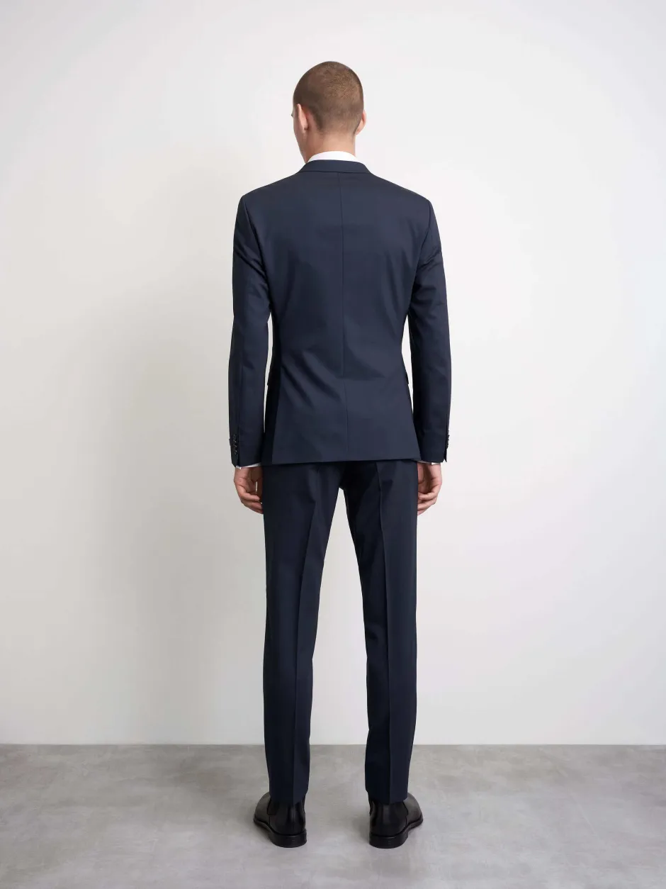 Miesten puvuntakki. Edessä kaksi nappia takin sulkemiseen. Edessä suorat läpälliset taskut. Takki on vuorillinen. Takana sivuhalkiot.