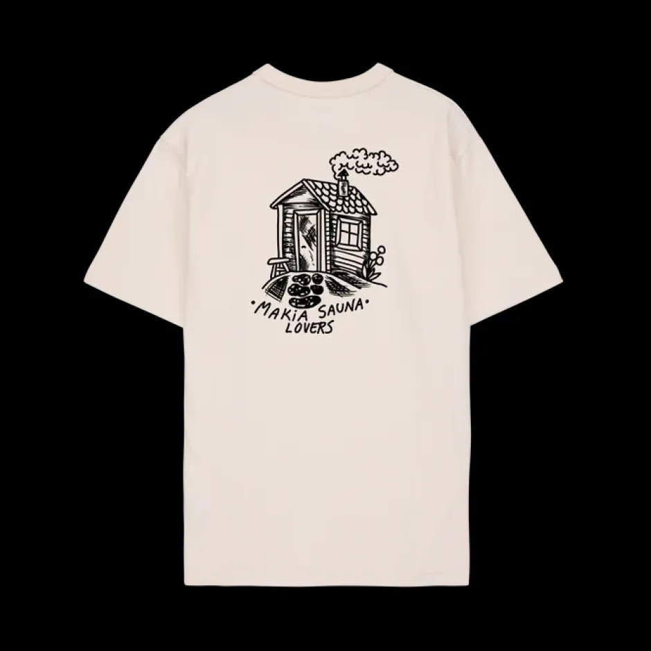 Makian miesten t-paita on valmistettu 100 % puuvillasta. T-paidassa on pyöreä pääntie ja pitkät hihat sekä mukavasti istuva regular fit –istuvuus. T-paidassa on sauna-aiheiset printit rinnassa sekä selässä.
