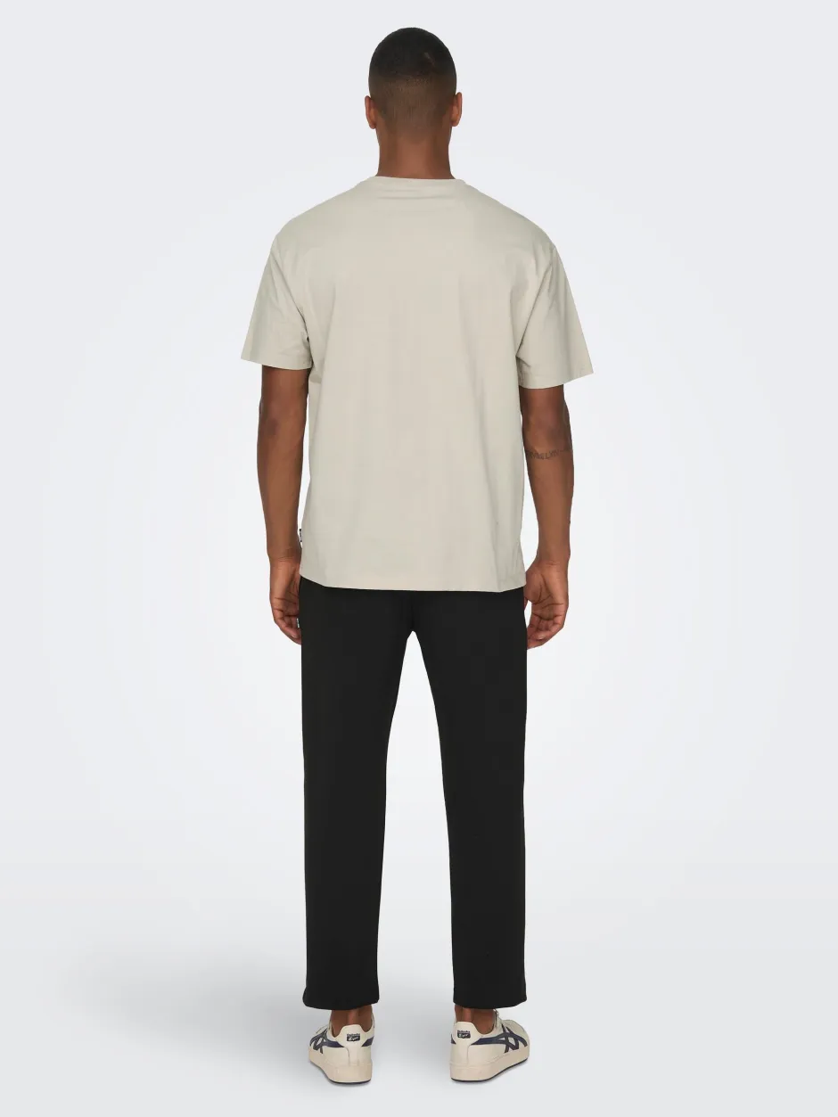 T-paita on miellyttävää puuvillaa ja mitoituksena hiukan leveähkö.