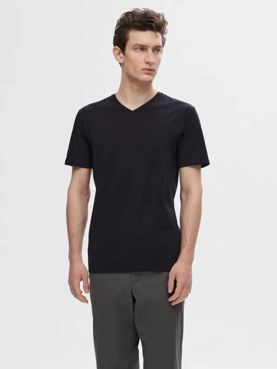 Selectedin yksivärinen t-paita. V-päätie, normaalimitoitus. Monikäyttöinen peruspaita töihin ja vapaa-aikaan. Koossa L pituus n.73 cm.
