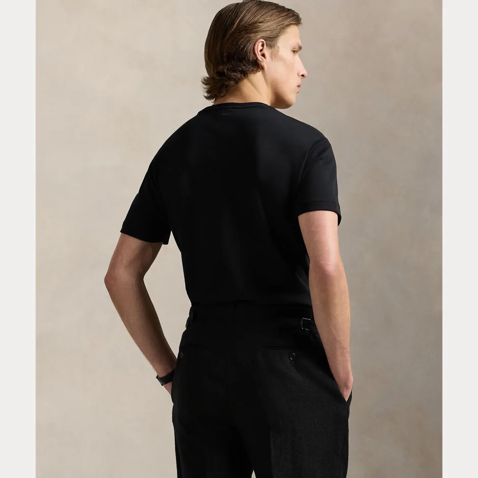 Polo Ralph Laurenin musta t-paita on valmistettu 100 % pehmeästä puuvillasta, joka tarjoaa hengittävän ja miellyttävän käyttökokemuksen. Klassinen pyöreä pääntie, lyhyet hihat ja regular fit -istuvuus tekevät siitä monikäyttöisen arjen luottovaatteen. Pienikokoinen, tunnistettava Polo Pony -logo rinnassa viimeistelee ikonisen ilmeen.