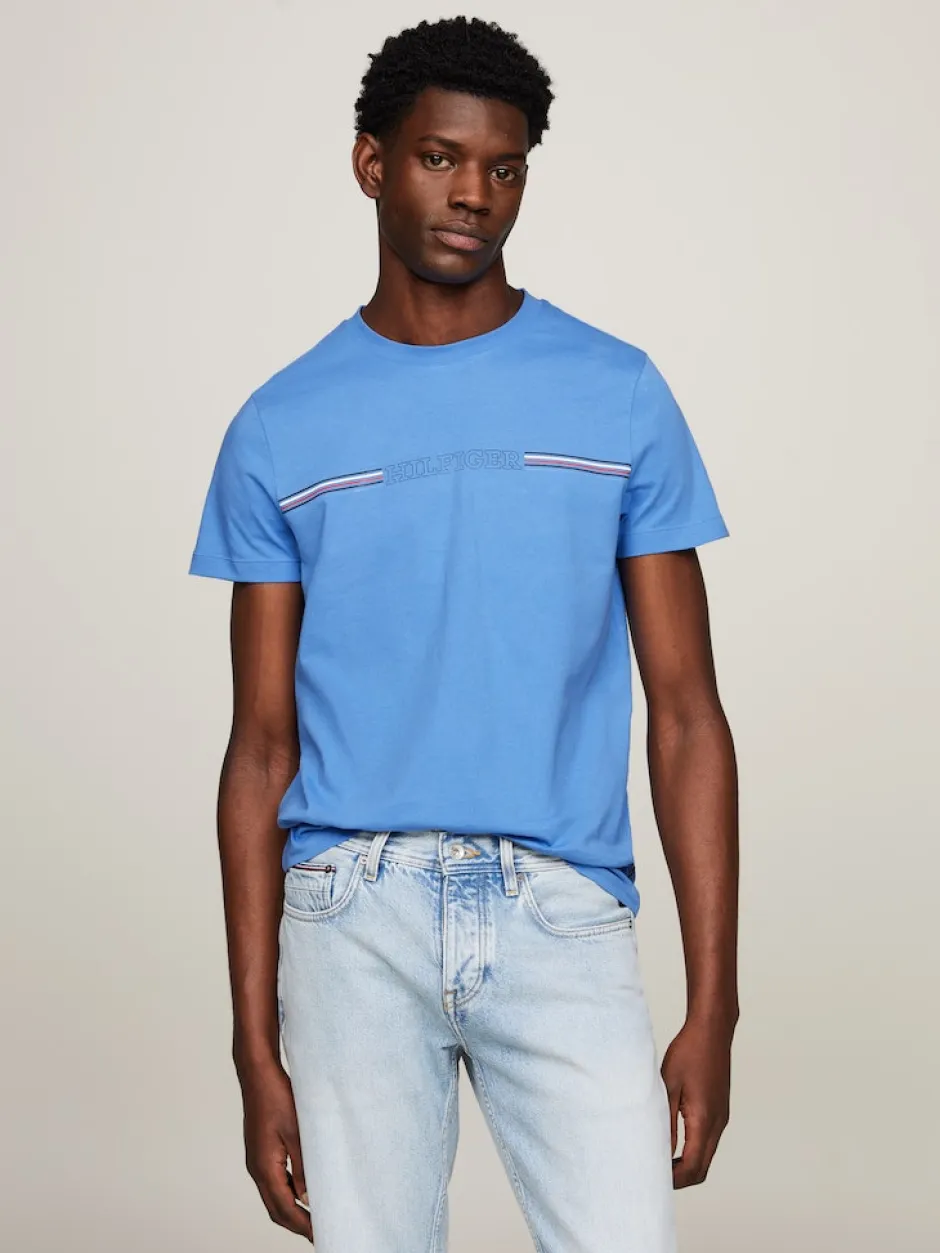 Lisää väripilkahdus asuun kuin asuun tällä slim fit t-paidalla! – Pyöreä pääntie – Tommy Hilfiger -printti.