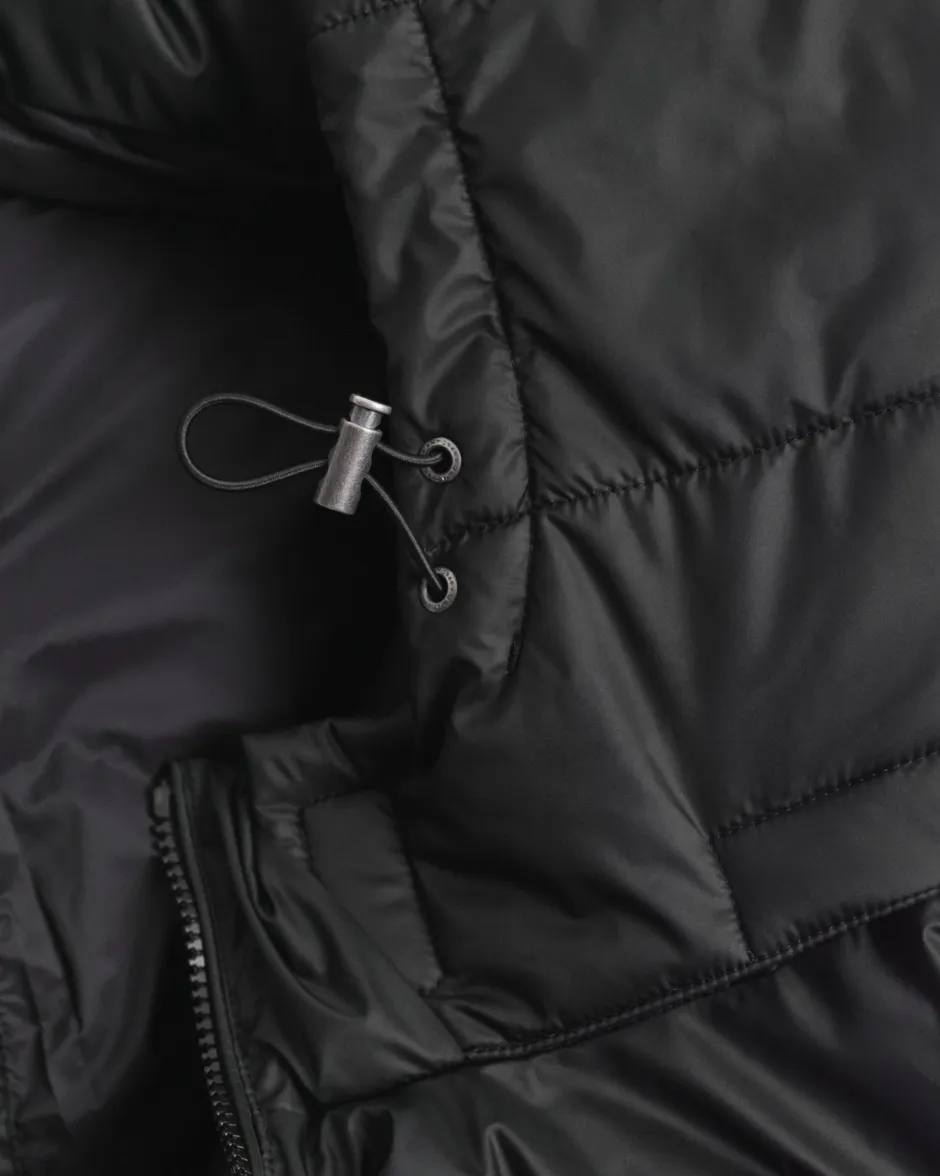 Ulkoiluun sopivassa lantiopituisessa Active Cloud ‑takissa on regular fit ‑mitoitus ja vettä hylkivä viimeistys. Takissa on kokovuori, toppaus, irrotettava huppu ja sivuilla vinot vetoketjutaskut. Muita ominaisuuksia ovat tyylikäs vetoketjukiinnitys edessä, säältä suojaavat hihansuut ja GANT-kirjailu rinnassa. Takissa on DWR (Durable Water Repellent) ‑pintakäsittely, joka auttaa hylkimään vettä kevyessä sateessa.