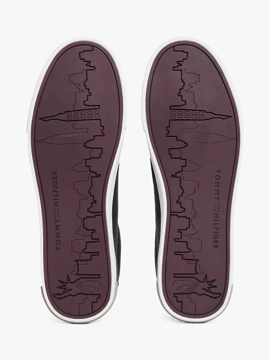 Tommy Hilfigerin Essential Leather Vulcanised Trainers -tennarit yhdistävät ajattoman tyylin ja laadukkaat materiaalit, tarjoten täydellisen lisän jokapäiväiseen pukeutumiseen. Nämä mustat matalavartiset tennarit on valmistettu 100 % nahasta, mikä takaa kestävyyden ja mukavuuden. Puuvillavuori ja polyuretaanista valmistettu sisäpohja lisäävät käyttömukavuutta. Vulkaanisoitu luonnonkuminen ulkopohja tarjoaa erinomaisen pidon ja kestävyyden. Tennareiden sivua koristaa ikoninen Tommy Hilfiger -lippu, ja väriblokki-design tuo niihin modernia ilmettä. Nauhallinen kiinnitys varmistaa säädettävän ja tukevan istuvuuden. Pohjan korkeus on 2,5 cm, mikä tuo hieman lisäkorkeutta ilman kompromisseja mukavuudessa