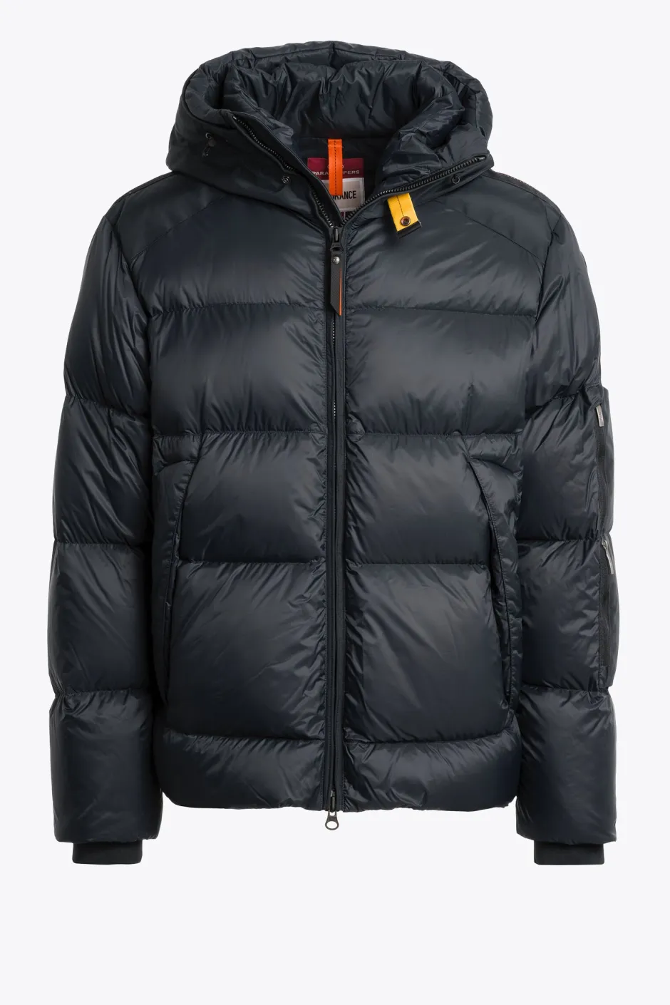 -Parajumpers-logomerkki hihassa ja ikoninen keltainen nauhakiinnitys kauluksessa