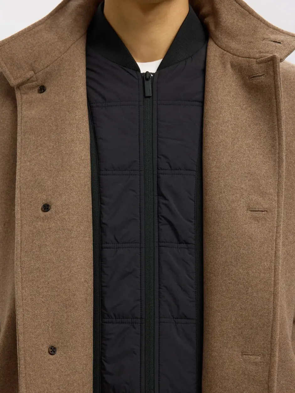 Vuorimateriaali: 100% polyesteri; ulkokangas: 50% villaa, 45% polyesteriä, 5% muita kuituja