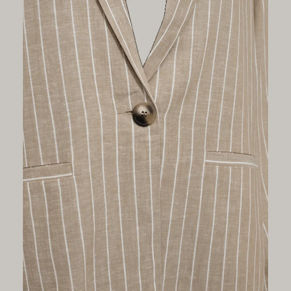 Vuoraamaton pellavableiseri, jossa taskut.