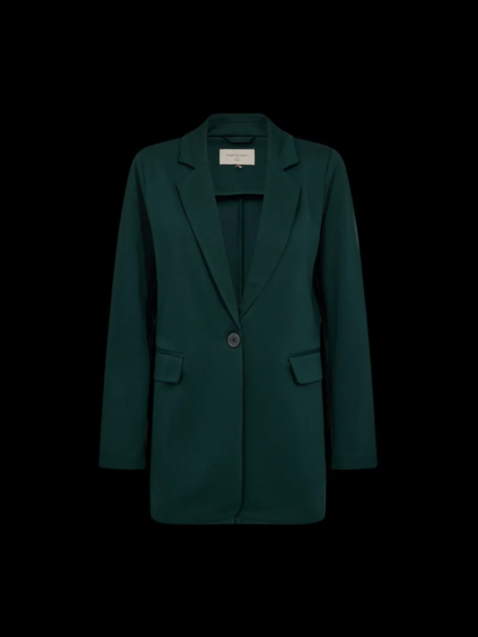 Freequentin tyylikäs, yksivärinen bleiseri. Klassinen siluetti, suora istuvuus, nappikiinnitys edessä ja etutaskut..