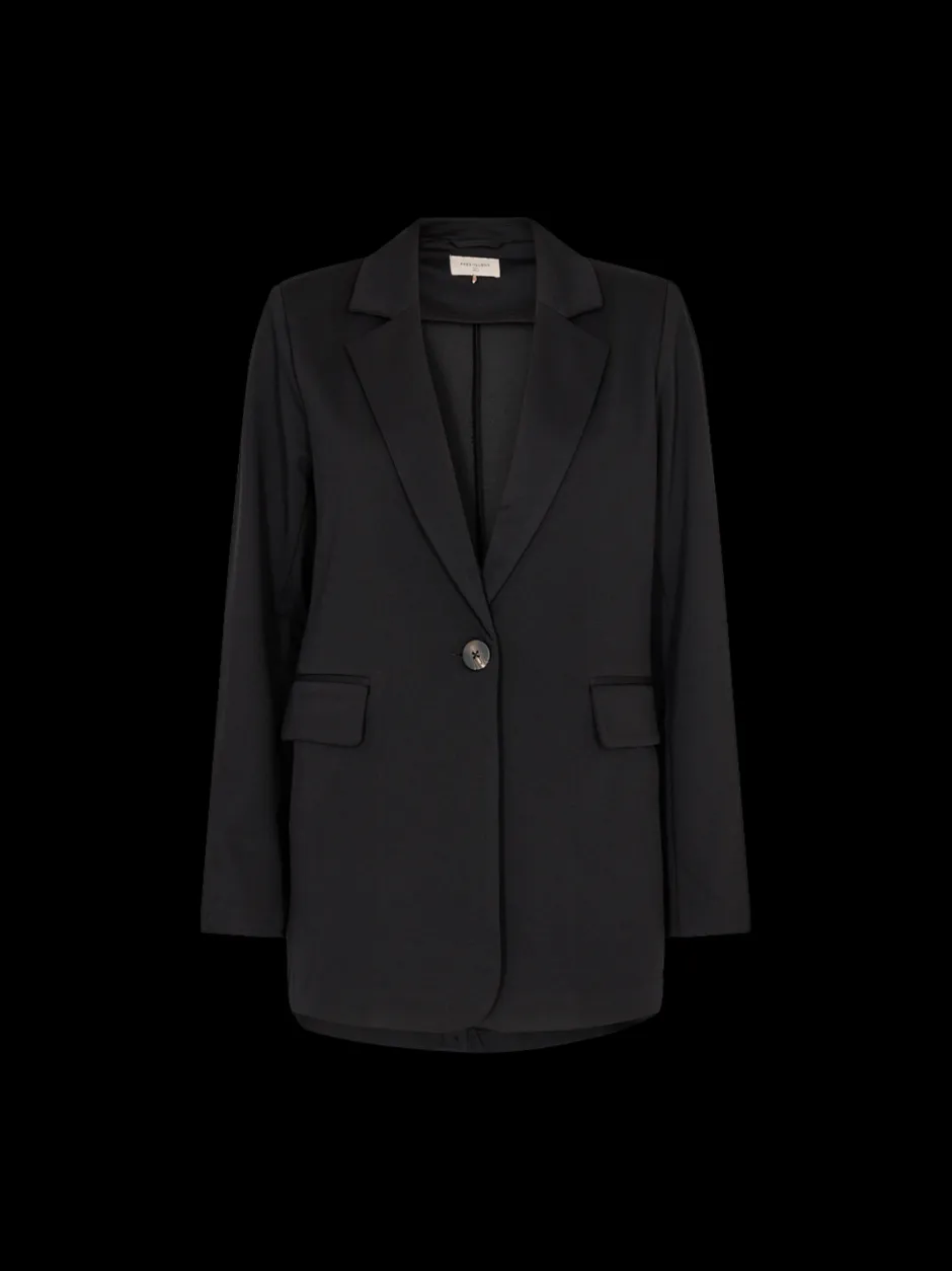 Freequentin tyylikäs, yksivärinen bleiseri. Klassinen siluetti, suora istuvuus, nappikiinnitys edessä ja etutaskut..