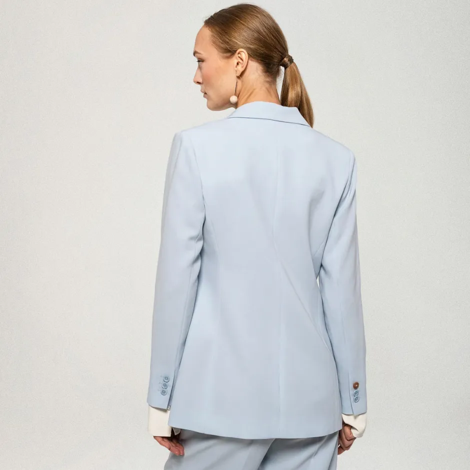 Klassinen yksirivinen bleiseri, joka on kevyesti muotoonommeltu. Sola-bleiserissä on edessä upotetut taskut, jakardikuvioitu vuori ja täyspitkät hihat. Toisessa hihansuussa puunappi. Suunniteltu Suomessa.