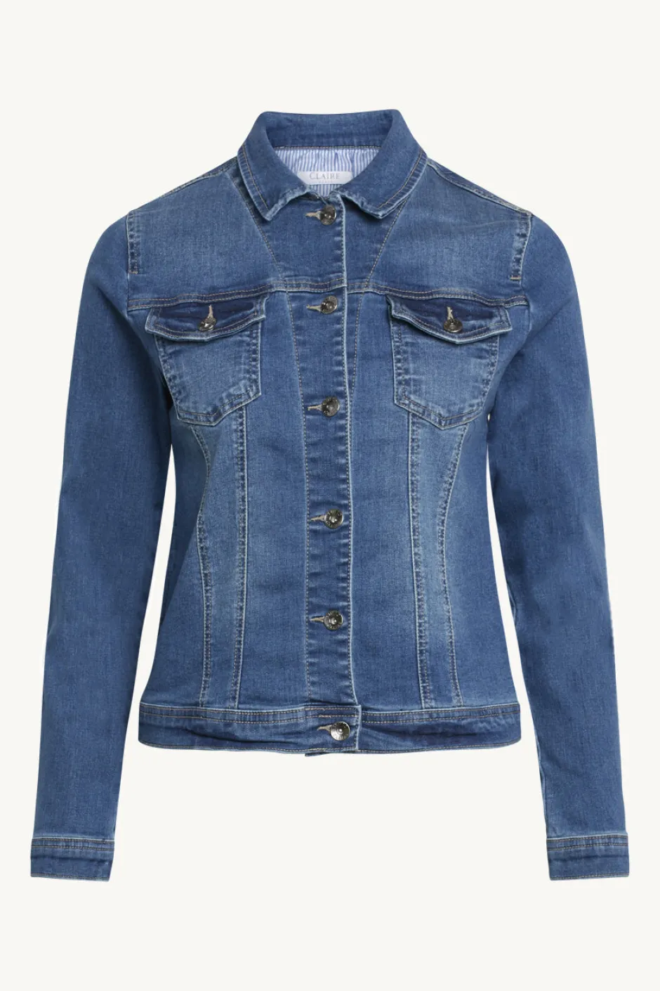 Clairen ihanan pehmeä ja joustavasta materiaalista valmistettu farkkutakki. Edessä kaksi rintataskua.