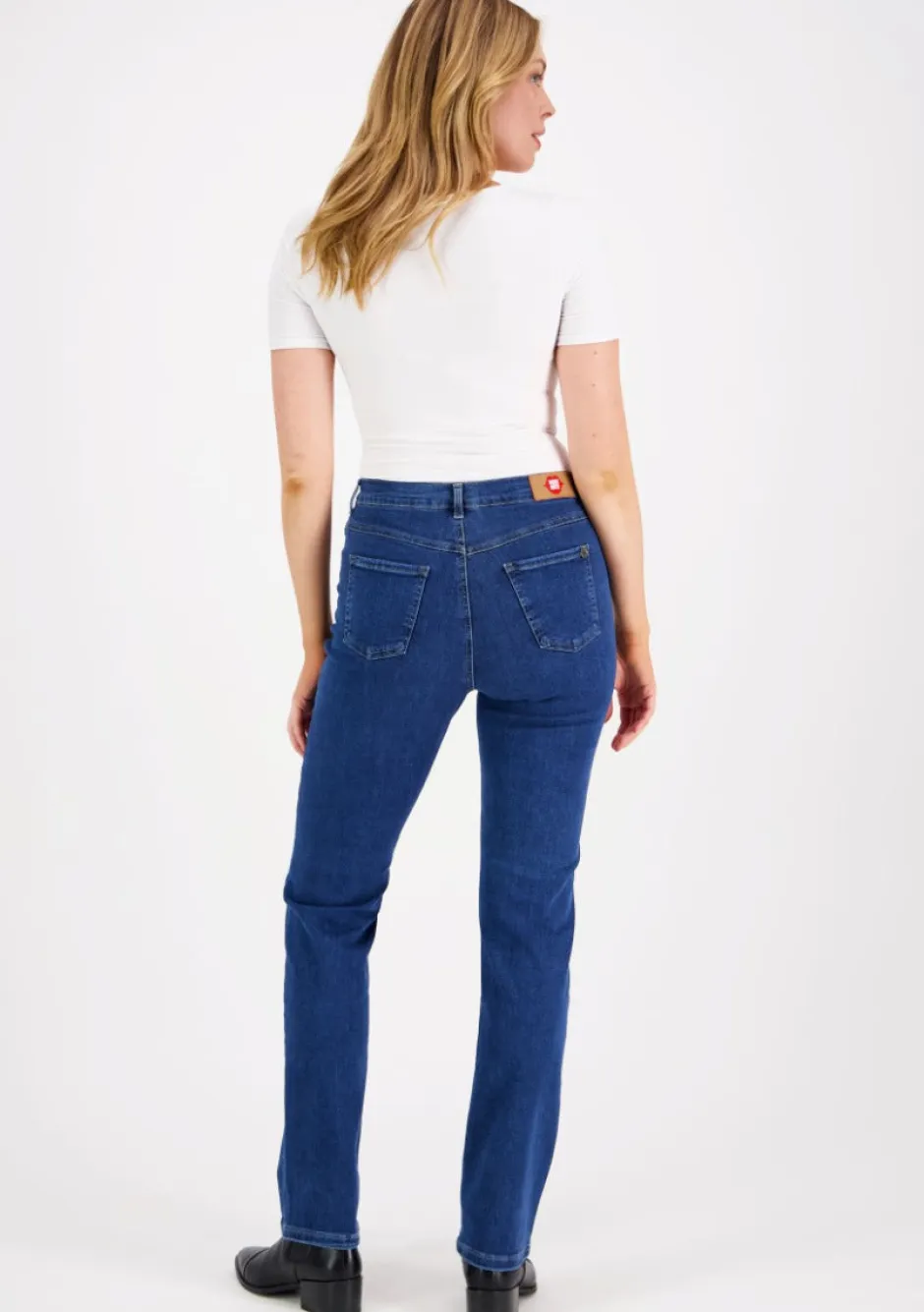 Naisellinen ja korkeavyötäröinen farkkumalli. Vyötärökorkeus on takaa korkeampi kuin edestä, joka parantaa housujen istuvuutta ja lantiolla on myös mukavasti tilaa. Materiaali on erittäin joustavaa joten, jos haluat napakan koon niin valitse yhtä kokoa pienempi kuin normaalisti.
