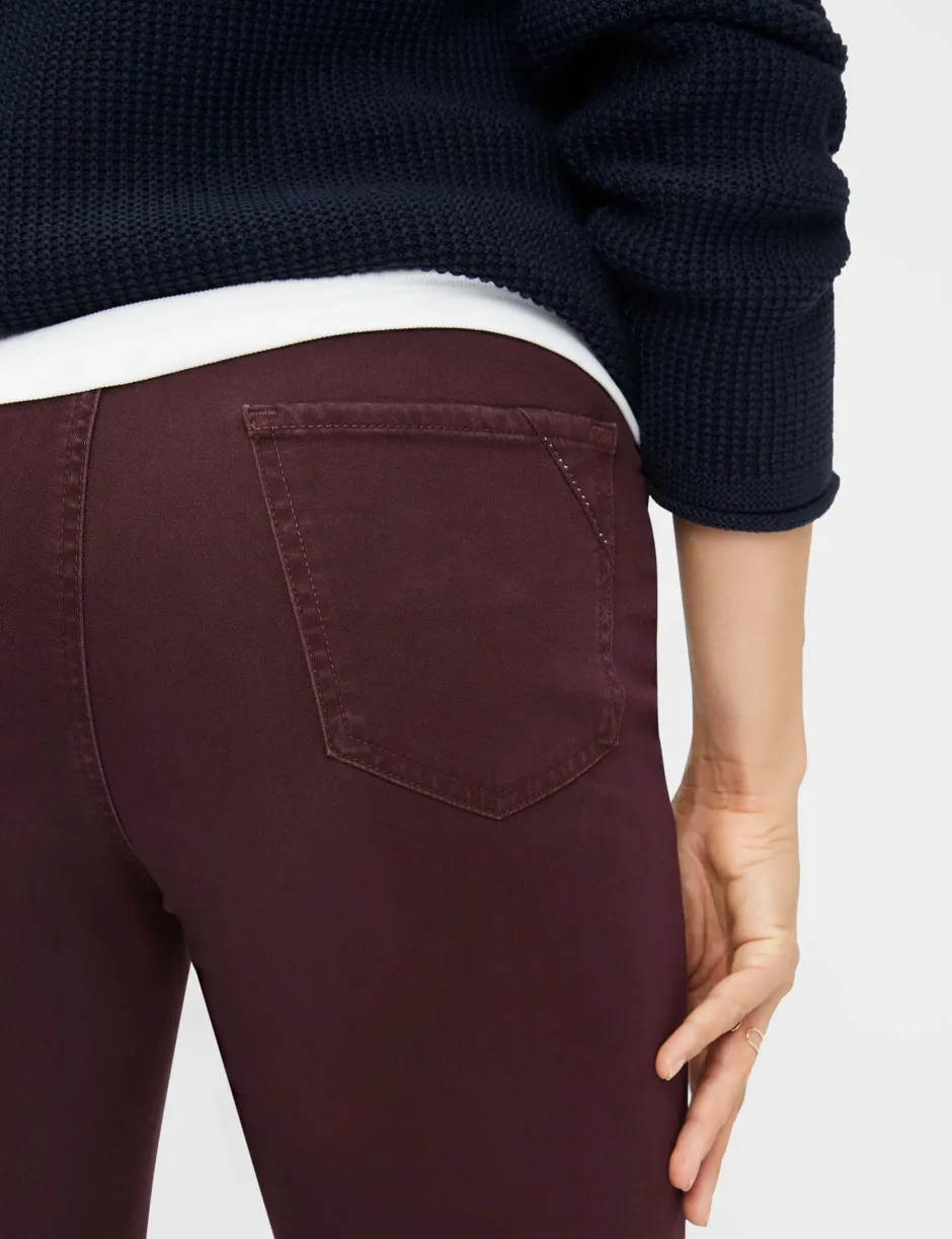CAROLA on naisten klassikko. Naisten Feminine Fit -housut, joissa on tavallinen vyötärö, muodostavat naiselliset muodot kapenevien lahkeidensa ansiosta ilman, että ne eivät ole rajoittavia. Takataskut antavat housuille urheilullisen ilmeen. Näiden viisitaskuisten housujen kestävä, nopeasti kuivuva ja ihoystävällinen lyocell-sekoitus tarjoaa myös erinomaisen käyttömukavuuden. Siluetti: kapeneva Vetoketju ja nappi Paikatut takataskut Kolikkotasku Sisälahkeen pituus: 82 cm Jalan leveys: 36 cm Vyötärön korkeus: Normaali Paino m²: 300 g
