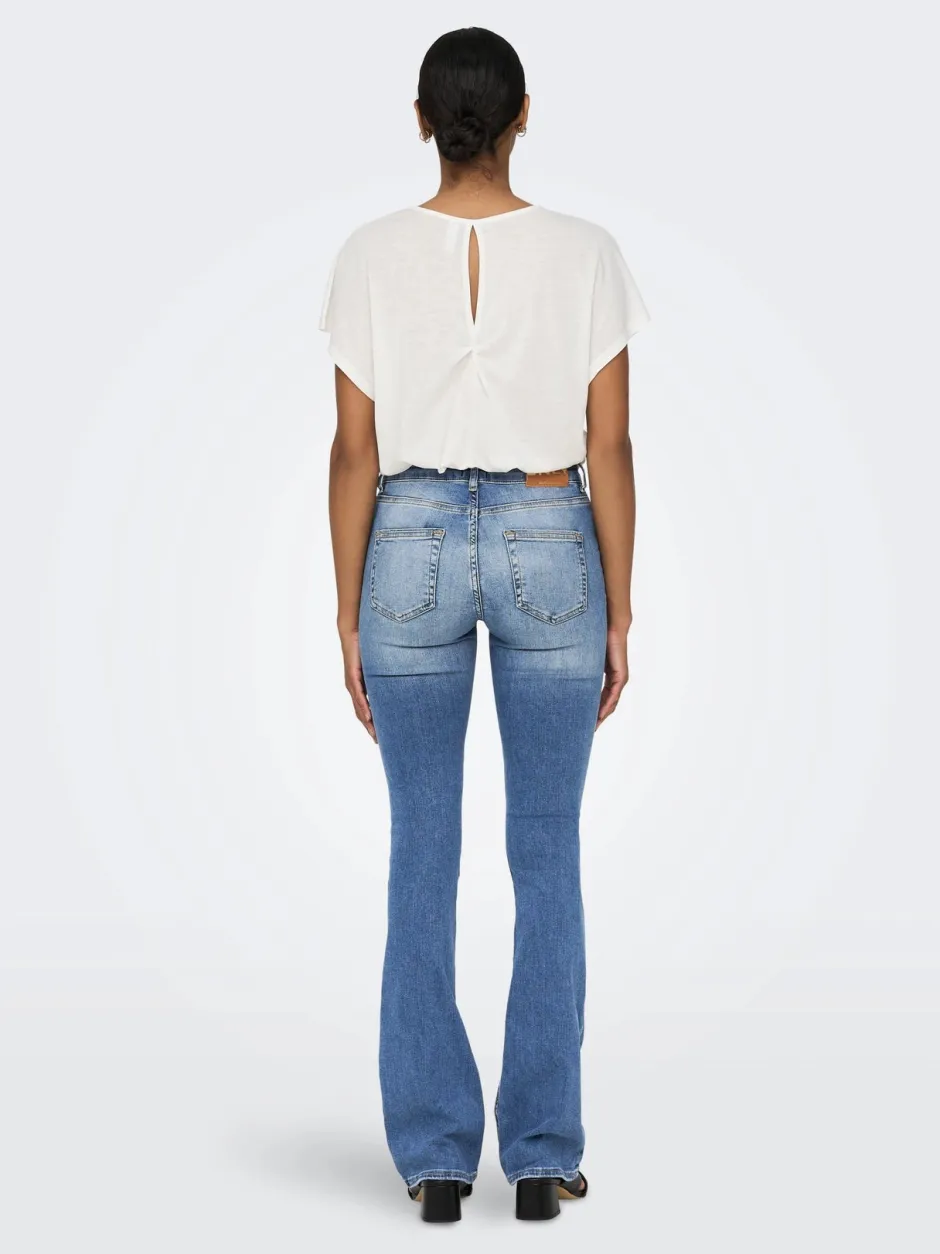 Nämä Onlyn farkut yhdistävät ajattoman farkkutyylin ja modernin muotoilun. Normaali vyötärö tarjoaa miellyttävän istuvuuden, ja flared-leikkaus levenee polven alapuolelta antaen rennon, mutta naisellisen siluetin.