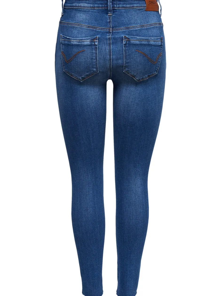 Onlyn kapealahkeiset farkut korkealla vyötäröllä. Klassinen 5-taskuinen malli, jossa nappi sekä vetoketju edessä. .Viimeistelemättömät lahkeensuut. Ihanan joustava materiaali