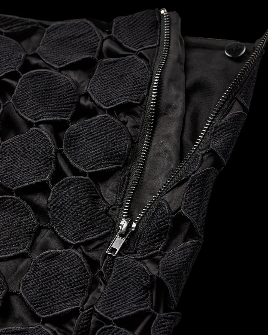 Ulkomateriaali: 100 % polyesteri. Vuori: 97 % viskoosia, 3 % elastaania.