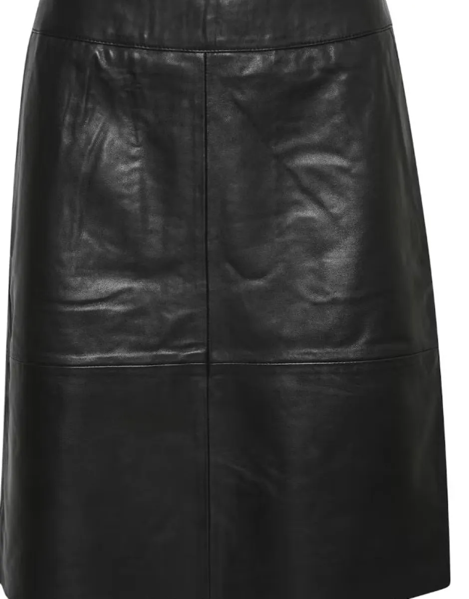 Naisten tyylikäs nahkahame. Normaali vyötärö.