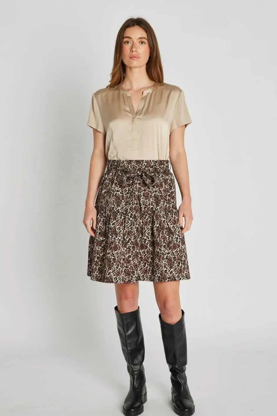 Lanora-hame on naisellinen ja kevyt hame, jossa on kaunis printti, kaksiosainen muotoilu ja joustava vyötärö optimaalisen mukavuuden takaamiseksi. Mukana tulevat vyö ja sivutaskut tekevät siitä sekä tyylikkään että käytännöllisen.