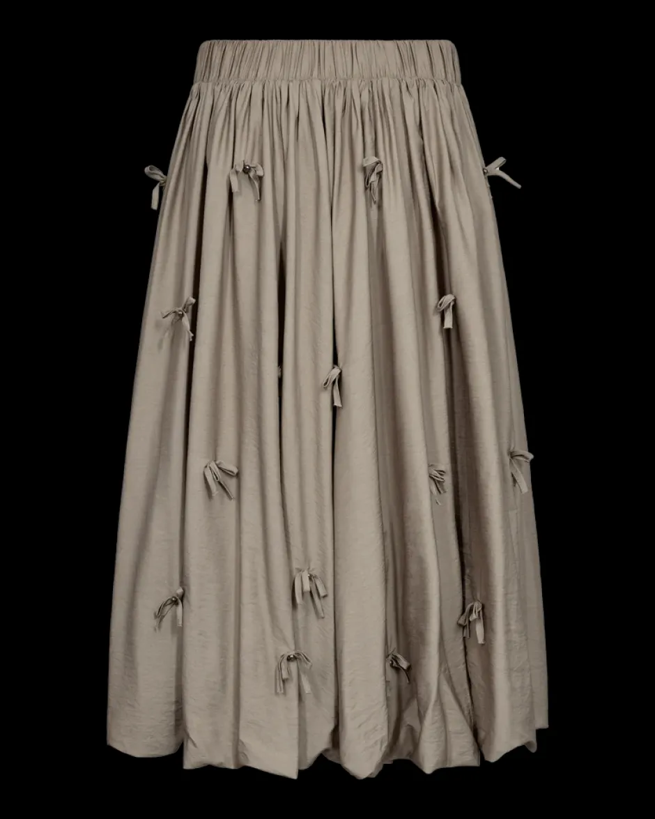 Pitkä, pallomainen hame, joka huokuu romanttista eleganssia ja huolellista skandinaavista suunnittelua. Hame on valmistettu ylellisen pehmeästä ja laskeutuvasta premium-sekoitteesta, ja sen kaareva siluetti luo kevyen ja ilmavan efektin asuusi.