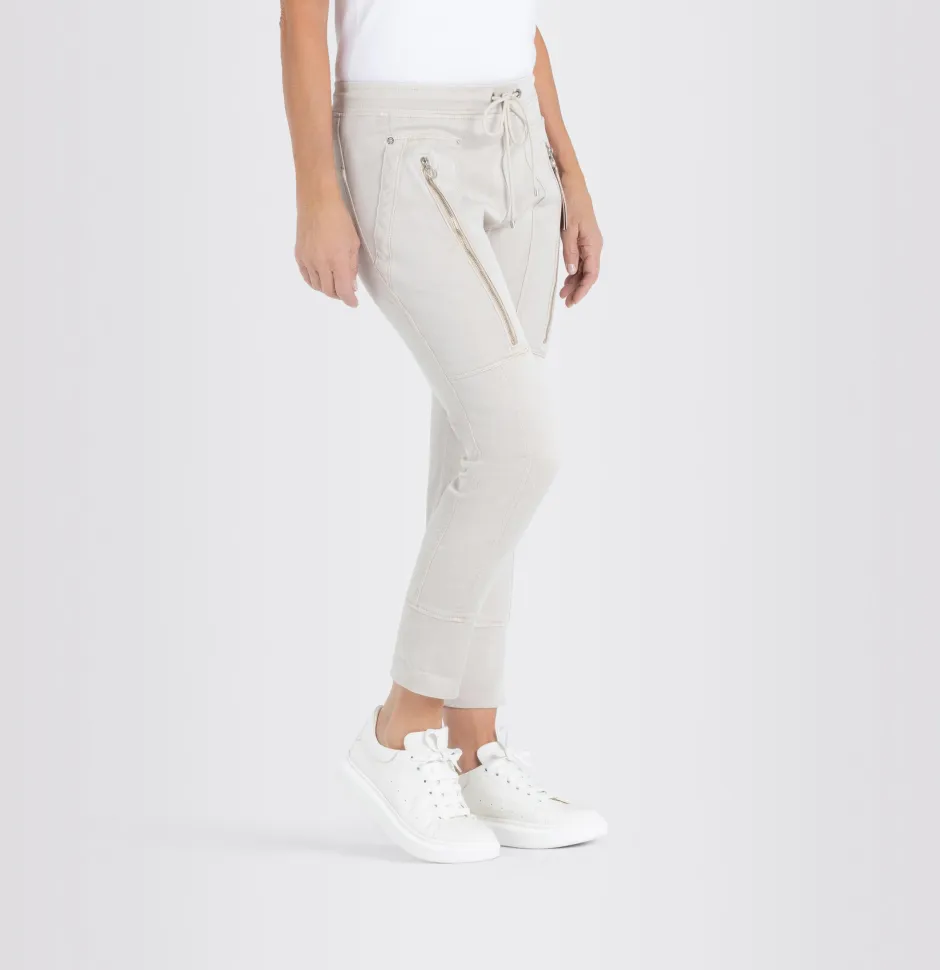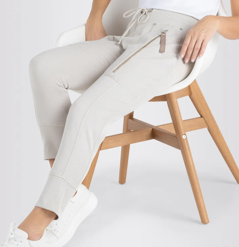 Naisten rennot housut joustavaa puuvillasekoitetta. Kapenevat lahkeet, normaali vyötärön korkeus. Urheilullinen ilme, joustava vyötärö ja säätönyöri. Vetoketjut taskujen kohdalla. Lahkeensuissa mansetit. Lahkeensuun ympärys koossa 36 27 cm.