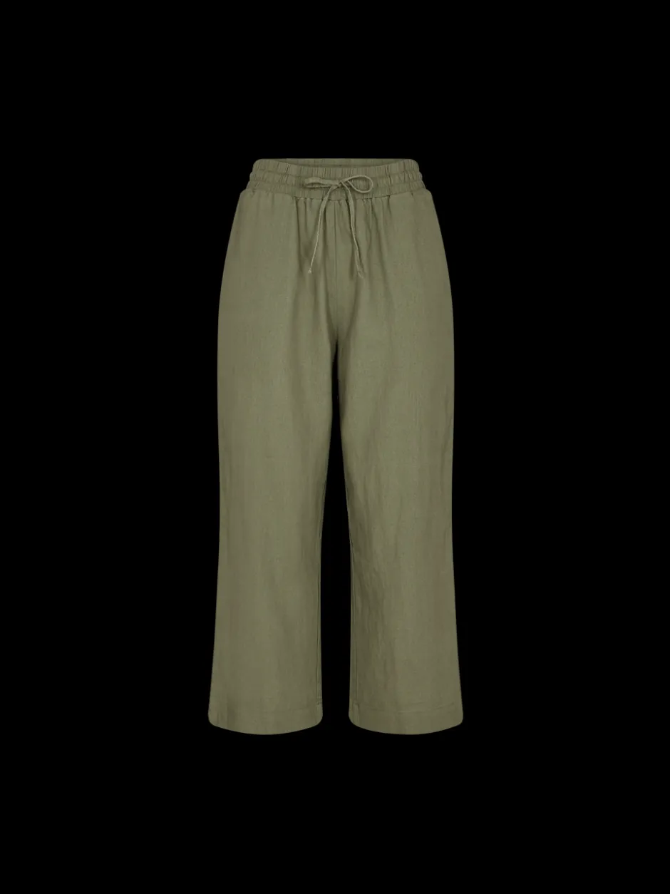 Naisten housut LA PANT 7/8 LINEN Armeijanvihreä>Freequent New