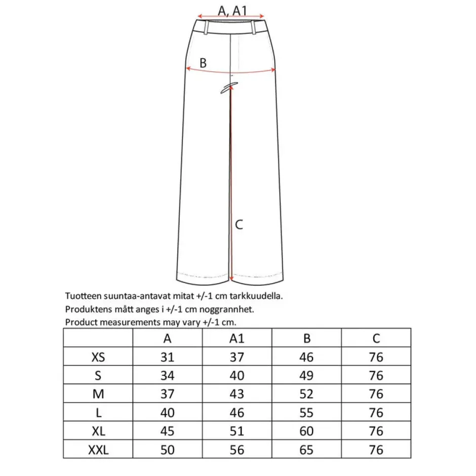 • Suorat, polvesta kevyesti muotoillut lahkeet