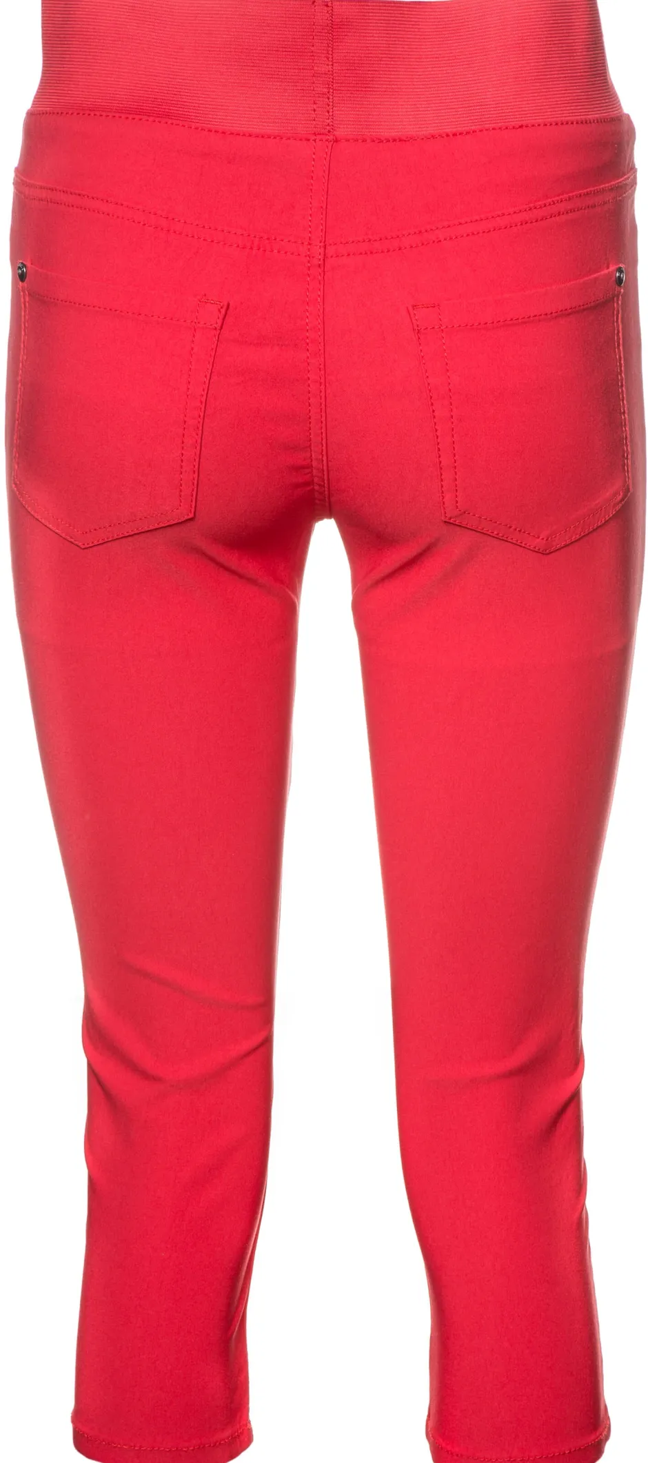 Naisten erittäin joustavat, kapeat housut. Huolettomat sekä helpot yhdistää tunikoiden, neuleiden ja puseroiden kanssa. Vyötäröllä leveä kuminauha, takana taskut ja edessä koristetaskut.