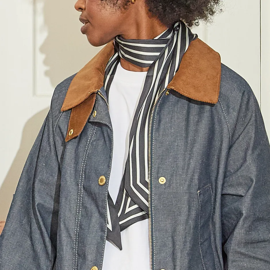 Klementin raidallinen huivi on täydellinen lisä asuihin – solmi kaulaan, hiuksiin, laukun hihnaan tai vyöksi. Huivissa on monikäyttöinen kapea malli ja kauniisti laskeutua sileä materiaali.