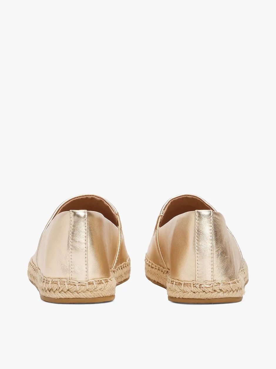 Nämä espadrillit on vaivattomasti lumoava valinta aurinkoisiin päiviin, ja ne on valmistettu pehmeästä nahasta, jossa on valoa vangitseva metallipinta.