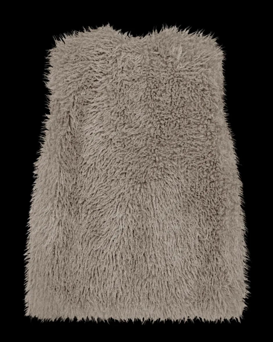 Freequent-liivi pehmeästä hapsukankaasta, jossa on vuori. Liivissä on yksinkertainen siluetti, syvä V-pääntie, piilotettu hakaskiinnitys edessä ja normaali istuvuus.