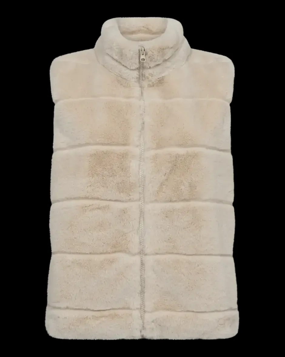 Liivissä on yksinkertainen siluetti, edessä vetoketjukiinnitys, suora leikkaus ja korkea kaulus.