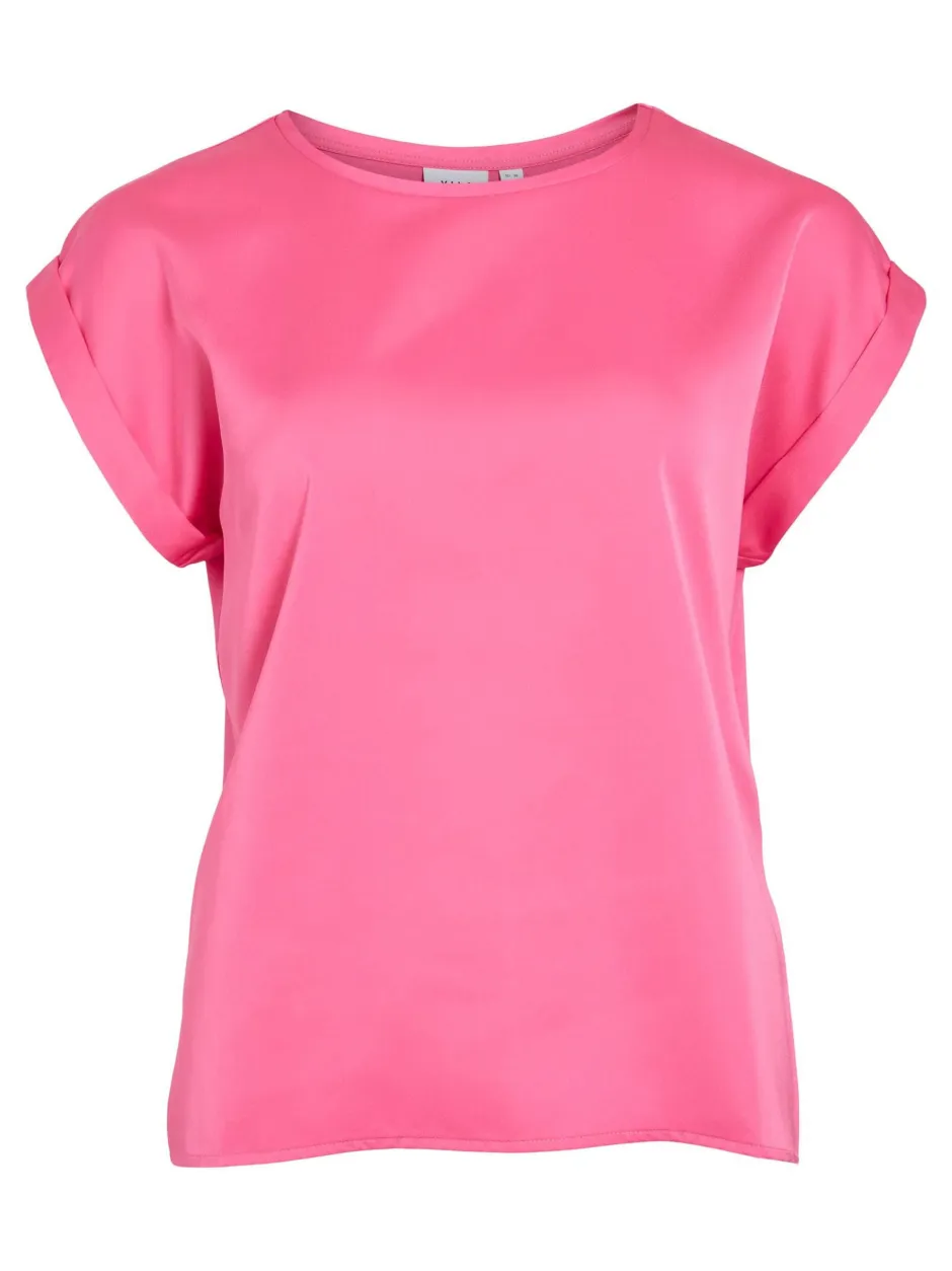 VILA Viellette S/S Satin Top on lyhythihainen toppi, jonka satiinimainen pinta tuo ripauksen ylellisyyttä arki‑ ja juhlatyyleihin. Pyöreä kaula‑aukko ja kevyt materiaali tekevät siitä vaivattoman valinnan, ja vaate näyttää huolitellulta vaikka yhdistät sen farkkujen kanssa. Topin materiaali on joustamatonta ja se laskeutuu siististi; esimerkiksi koossa 38 pituus on noin 61 cm ja hihojen pituus noin 11 cm.