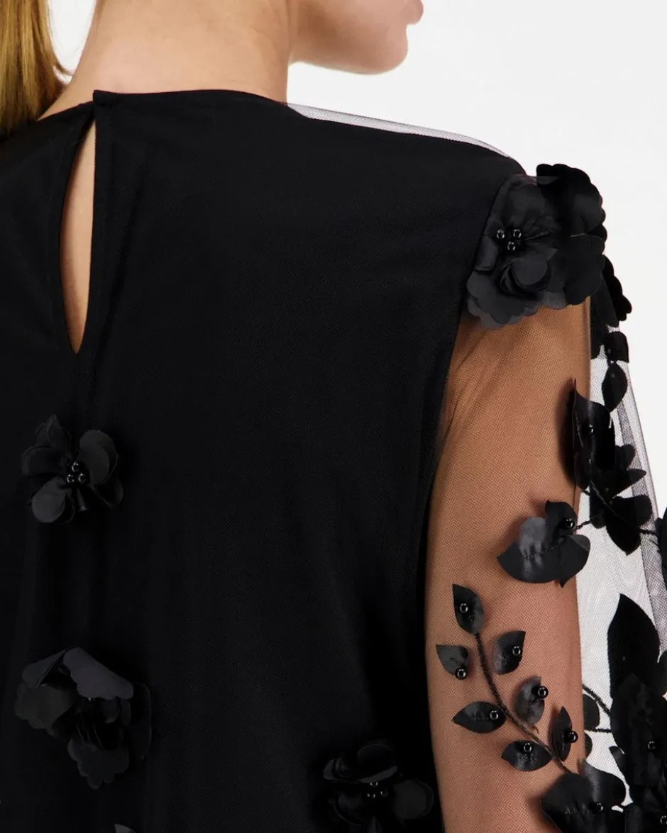 PBO Alessio mekko on elegantti maksimekko, jonka erottuvana yksityiskohtana on kolmiulotteinen kukkaprintti sekä läpikuultavat hihat, jotka lisäävät juhlavuutta. Mekossa on kiinteä vuori, mikä takaa miellyttävän käyttökokemuksen. Näyttävä valinta juhlaan!