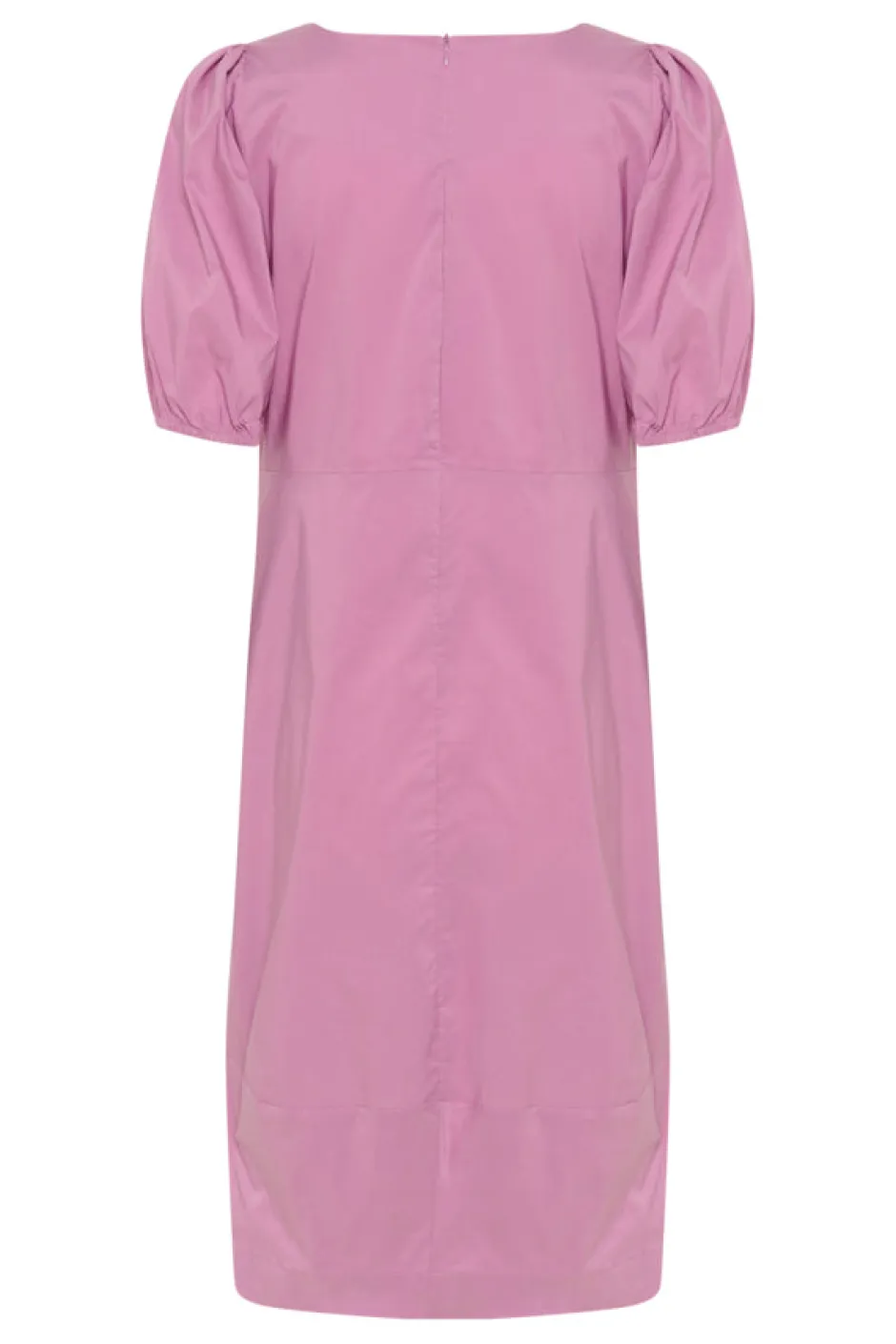 Culturen kauniissa mekossa on miellyttävä joustava materiaali. .Mekossa lyhyet puhvihihat, vetoketjukiinnitys selässä sekä taskut. Hieman levenevä helma joka laskeutuu kauniisti. Kaunis v- pääntie. Sopii sekä arkisempaan kuin juhlavampaankin käyttöön.
