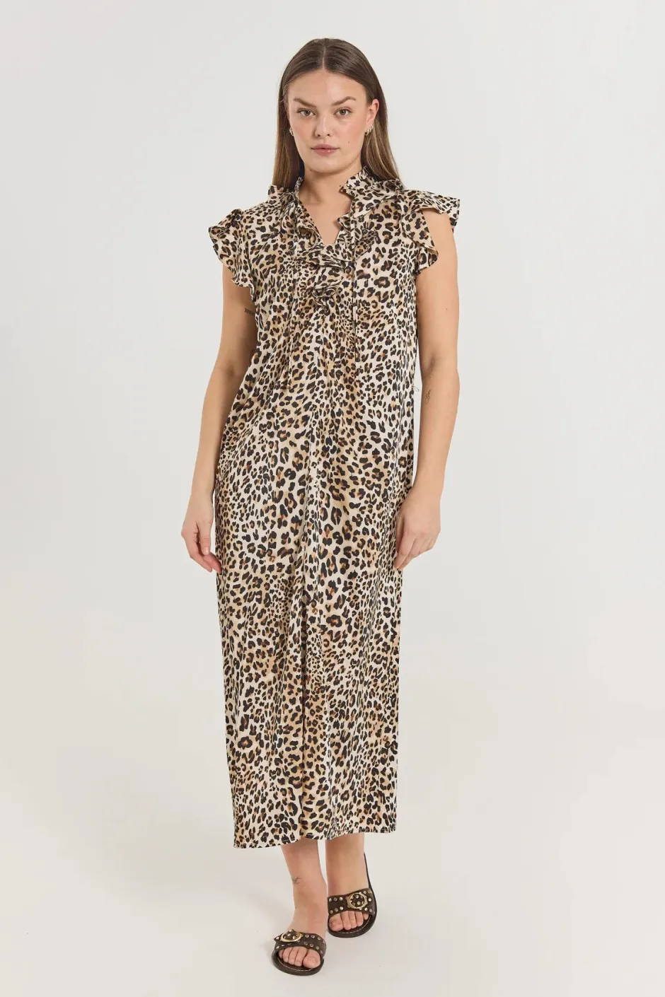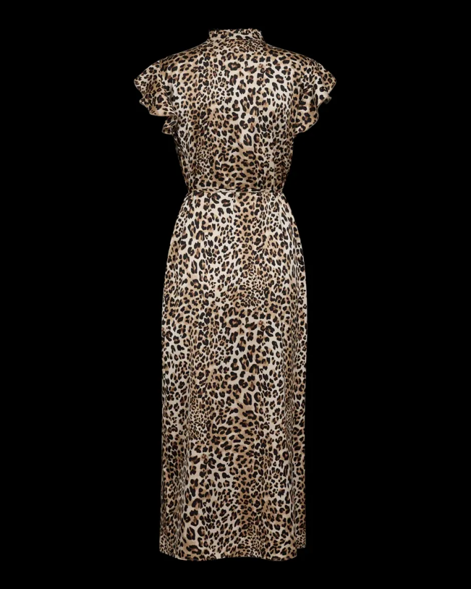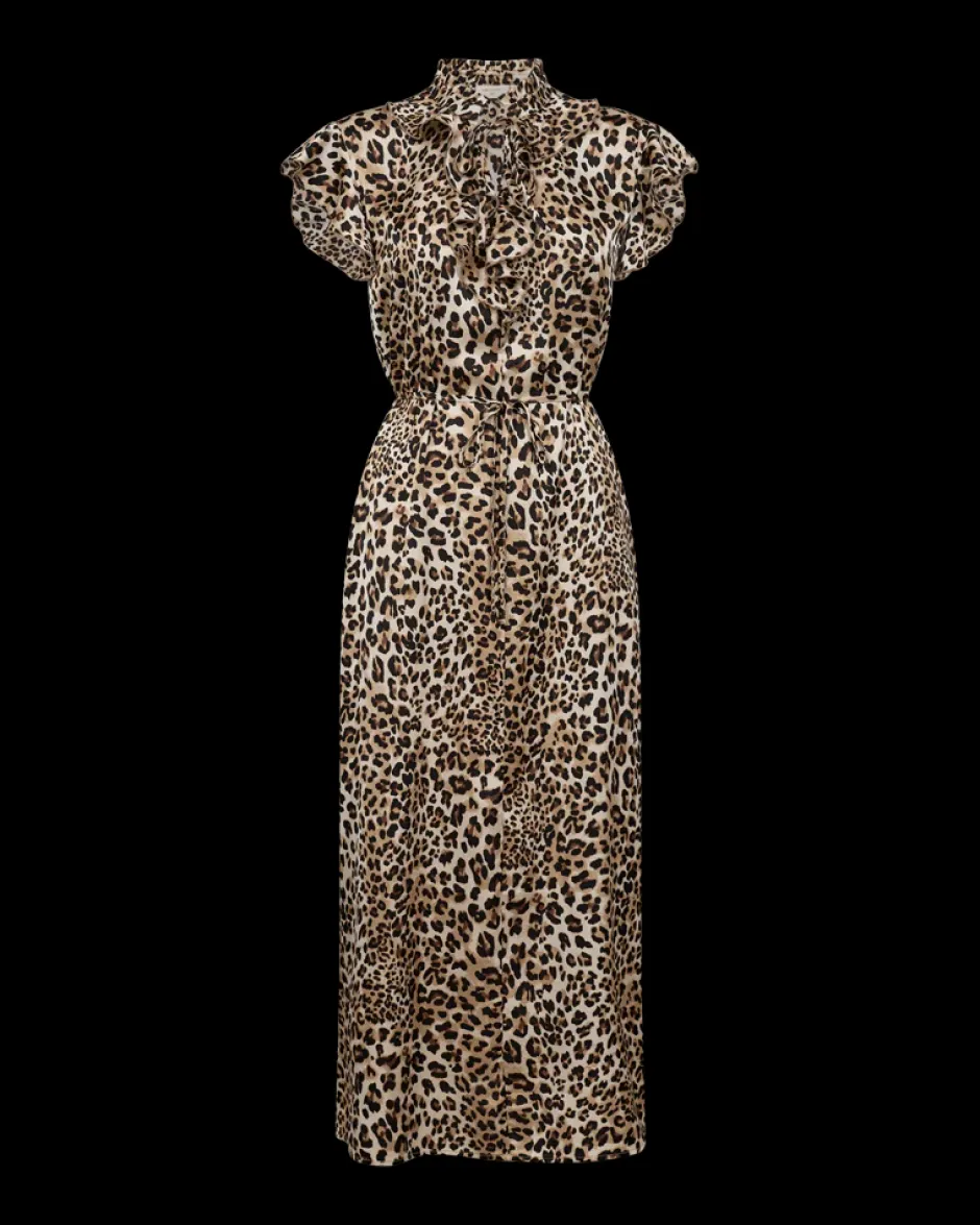 Freequentin Baylin-mekko on kevyt ja tyylikäs valinta kesäpäiviin. Mekossa on lyhyet röyhelöhihat, V-pääntie nauhoilla sekä irrotettava vyö, jolla voit korostaa vyötäröäsi. Leopardikuviointi tuo asuun rohkeutta ja persoonallisuutta.