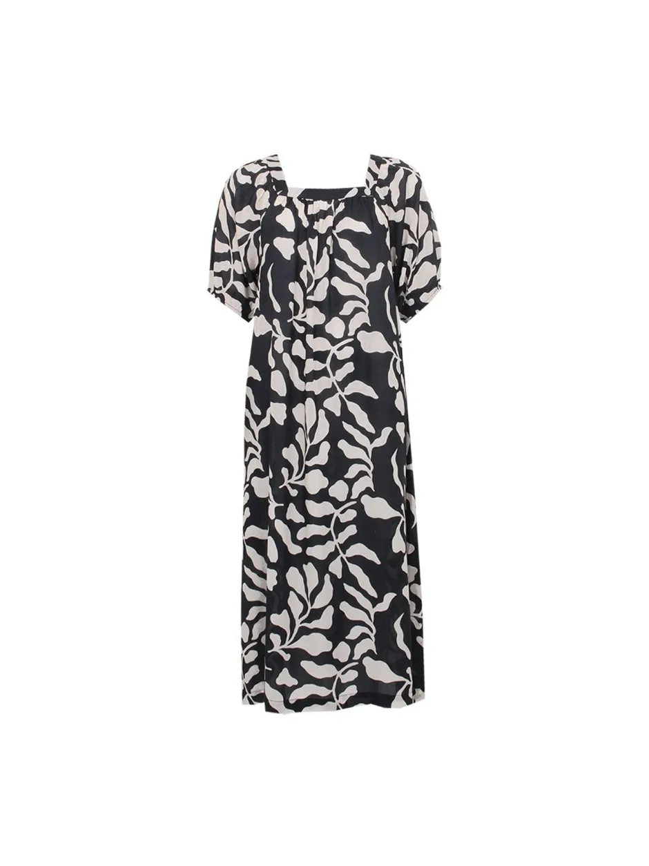 STI Cia -mekko on kevyt ja ilmava valinta kesäpäiviin. Sen 100 % viskoosikangas tuntuu miellyttävältä ihoa vasten ja laskeutuu kauniisti. Mekon musta/kitti-väritys ja kukkakuosi tuovat siihen raikkaan ja naisellisen ilmeen