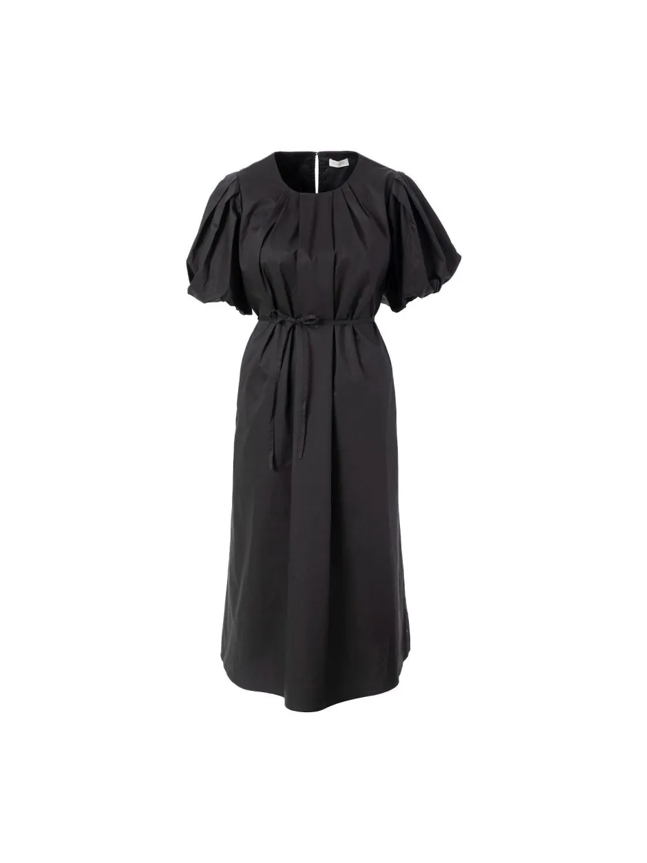Kaunis mekko runsailla puhvihihoilla ja taskuilla. Mukana tulee kapea naru, jonka voi halutessaan sitoa vyötärölle.