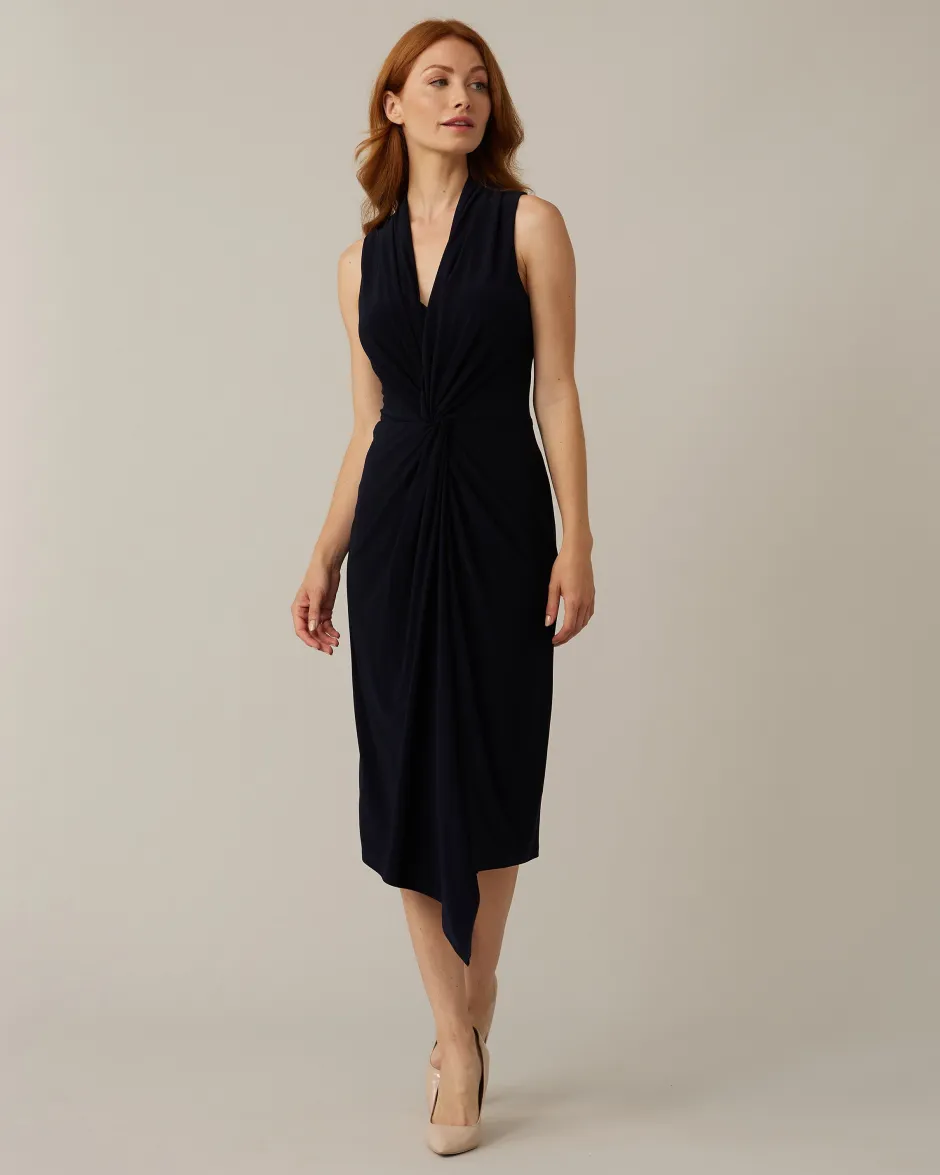 Ribkoffin ihana joustava ja pehmeä mekko on hihaton ja helma peittää polven. Pääntie on uurrettu V. Edessä solmumainen yksityiskohta, joka korostaa kauniisti vyötäröä. Helma on hieman epäsymmetrinen etupuolelta. Takana on vetoketju.